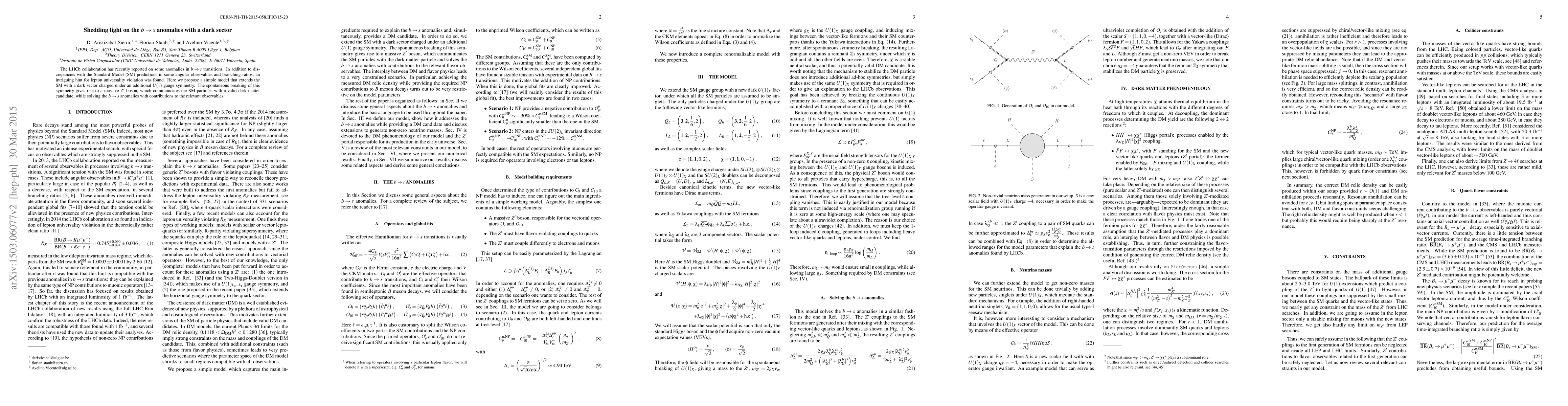 This paper proposes a model extending the Standard Model with a dark sector under a new $U(1)$ symmetry, introducing a $Z^\prime$ boson to address the $b\to s$ anomalies observed by LHCb, while providing a viable dark matter candidate. The model resolves discrepancies in angular observables and hints at lepton universality violation.