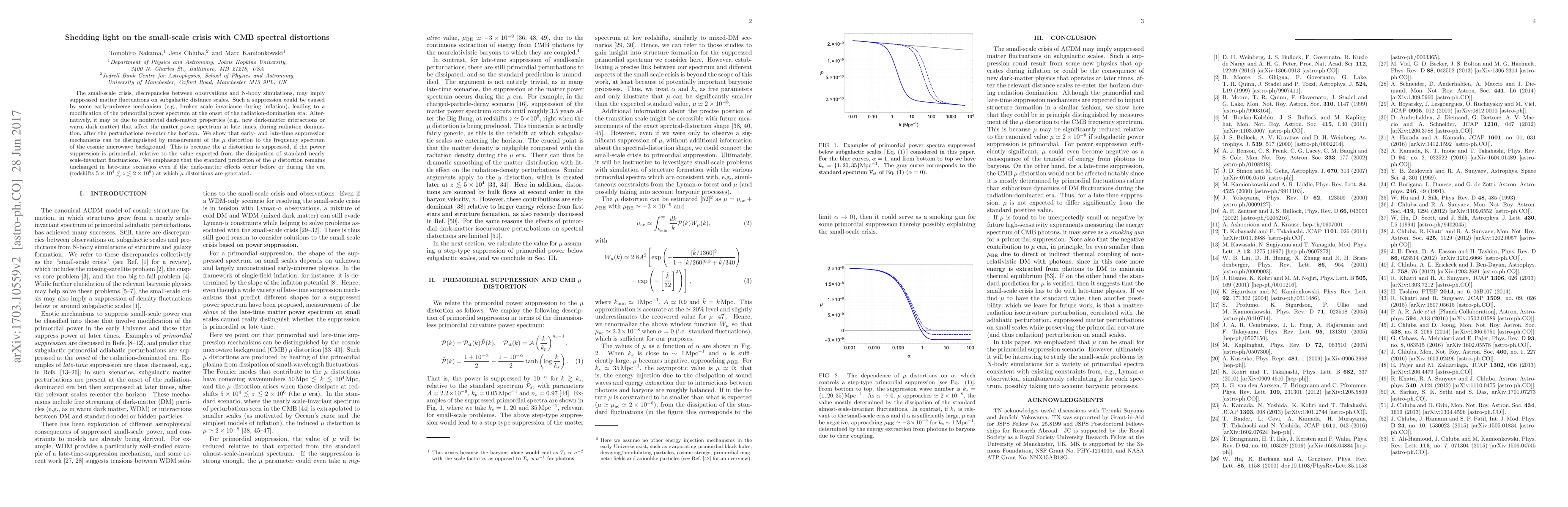 The small-scale crisis, discrepancies between observations and N-body simulations, may imply suppressed matter fluctuations on subgalactic distance scales. Such a suppression could be caused by some early-universe mechanism (e.g., broken scale invariance during inflation), leading to a modification of the primordial power spectrum at the onset of the radiation-domination era. Alternatively, it may be due to nontrivial dark-matter properties (e.g., new dark-matter interactions or warm dark matter) that affect the matter power spectrum at late times, during radiation domination, after the perturbations re-enter the horizon. We show that early- and late-time suppression mechanisms can be distinguished by measurement of the $\mu$ distortion to the frequency spectrum of the cosmic microwave background. This is because the $\mu$ distortion is suppressed, if the power suppression is primordial, relative to the value expected from the dissipation of standard nearly scale-invariant fluctuations. We emphasize that the standard prediction of the $\mu$ distortion remains unchanged in late-time scenarios even if the dark-matter effects occur before or during the era (redshifts $5\times 10^4 \lesssim z \lesssim 2\times 10^6$) at which $\mu$ distortions are generated.