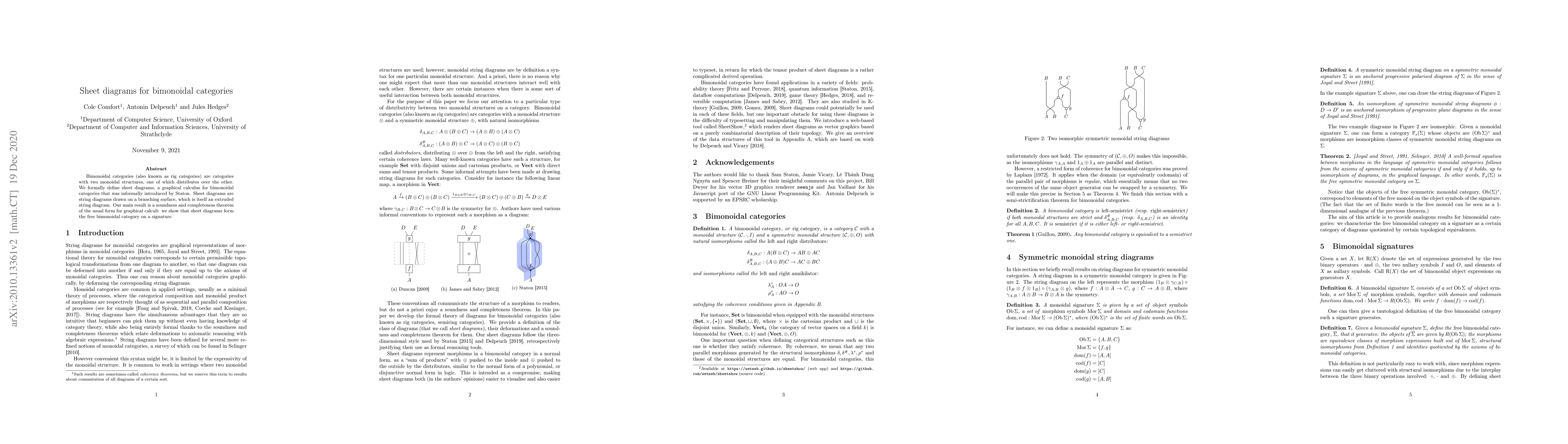 The paper introduces sheet diagrams, a graphical calculus for bimonoidal categories, and proves a soundness and completeness theorem, demonstrating that these diagrams form the free bimonoidal category on a given signature.