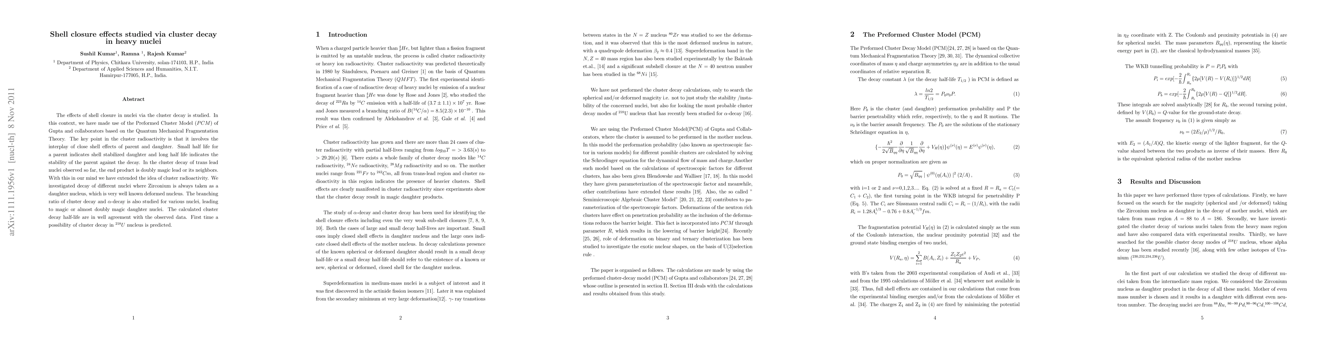 Researchers studied shell closure effects in heavy nuclei via cluster decay, predicting new possibilities for cluster decay in certain nuclei like Uranium-218.