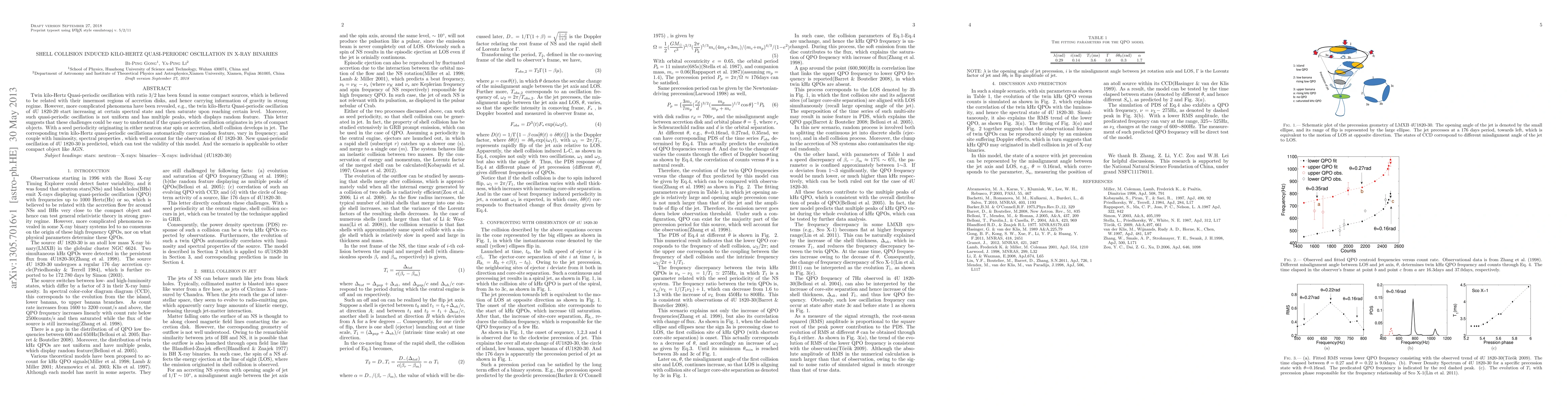 This paper proposes that shell collisions in the jets of compact objects can explain the complex behavior of twin kilo-Hertz quasi-periodic oscillations observed in X-ray binaries, including their random features and frequency variations. This model also predicts new quasi-periodic oscillations in 4U 1820-30 and suggests applicability to other compact objects like AGN.