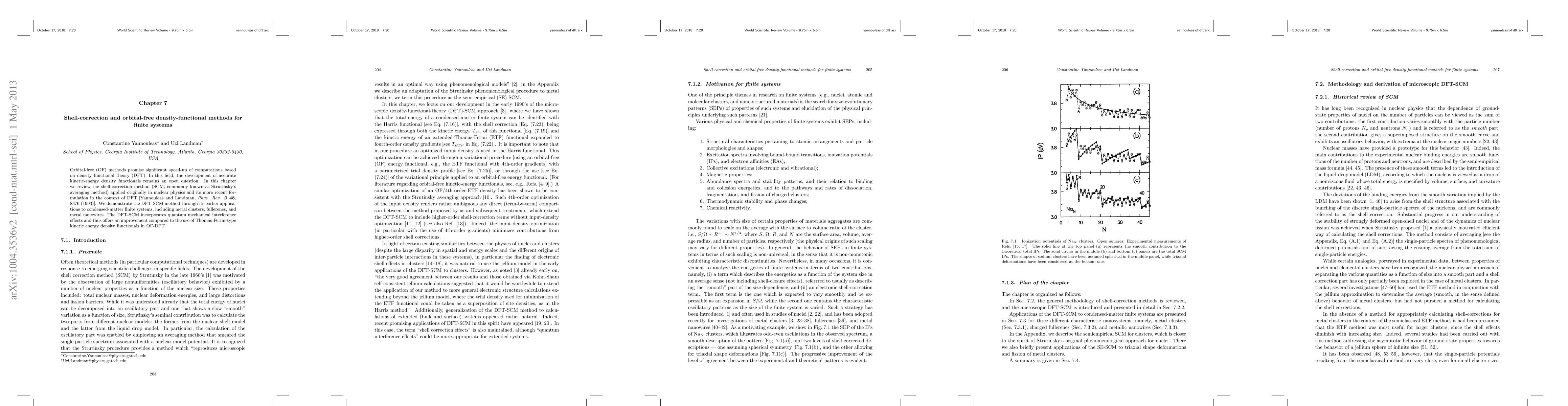 Orbital-free (OF) methods promise significant speed-up of computations based on density functional theory (DFT). In this field, the development of accurate kinetic-energy density functionals remains an open question. In this chapter we review the shell-correction method (SCM, commonly known as Strutinsky's averaging method) applied originally in nuclear physics and its more recent formulation in the context of DFT [Yannouleas and Landman, Phys. Rev. B 48, 8376 (1993)]. We demonstrate the DFT-SCM method through its earlier applications to condensed-matter finite systems, including metal clusters, fullerenes, and metal nanowires. The DFT-SCM incorporates quantum mechanical interference effects and thus offers an improvement compared to the use of Thomas-Fermi-type kinetic energy density functionals in OF-DFT.