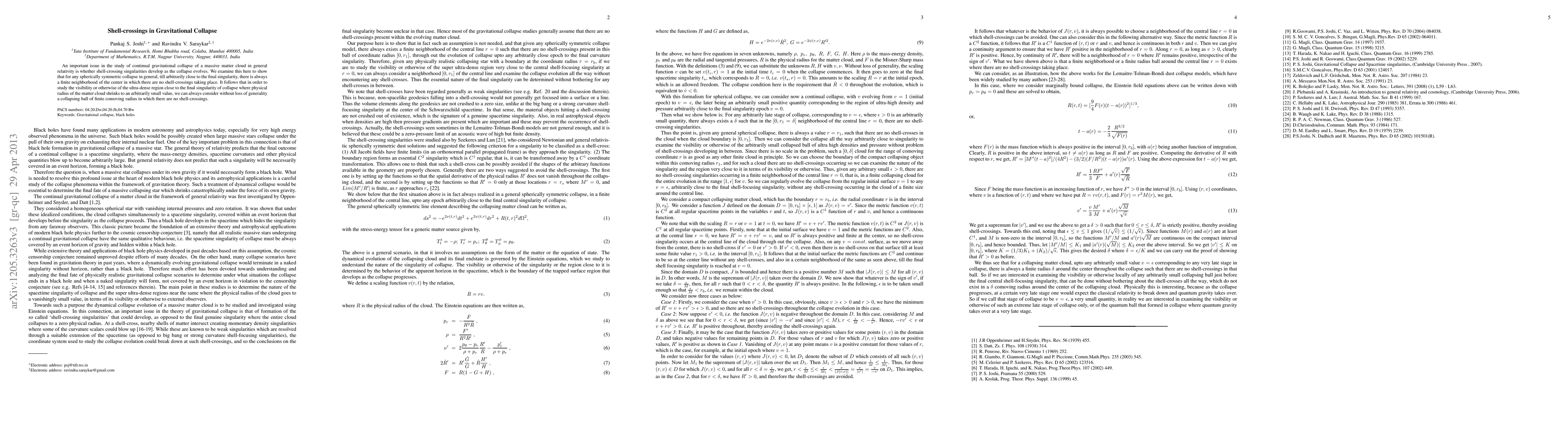 This paper investigates the potential for shell-crossing singularities in gravitational collapse scenarios in general relativity, concluding that no shell-crossings occur within a finite neighborhood of the center. Thus, the final genuine shell-focusing singularity can be studied in a collapsing ball of finite comoving radius without loss of generality.