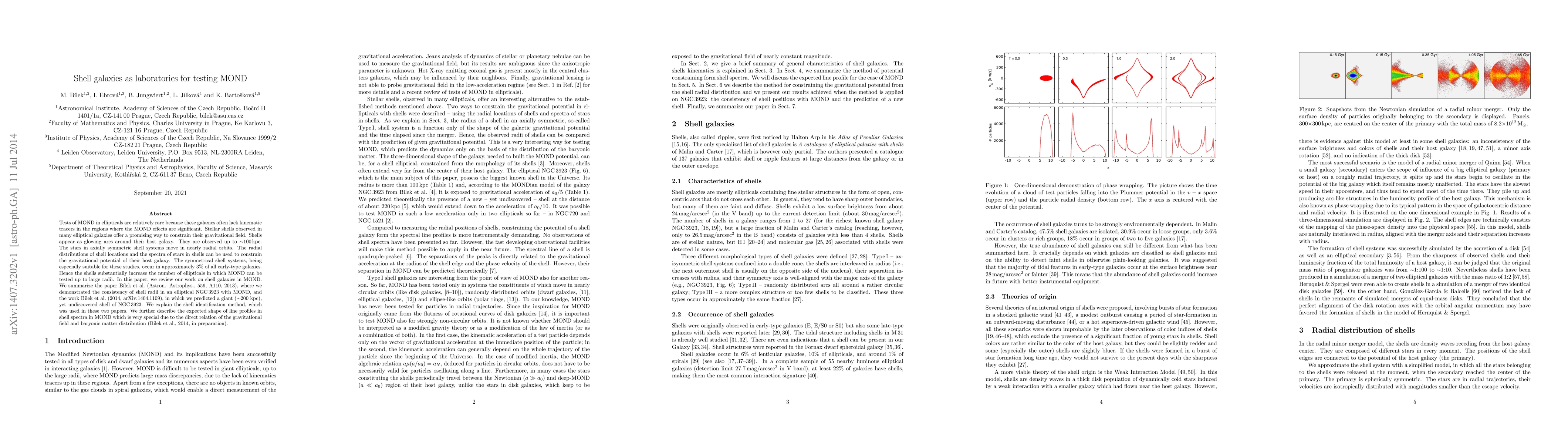This paper reviews the use of stellar shells in elliptical galaxies as laboratories for testing Modified Newtonian Dynamics (MOND). It highlights the method for identifying shells and demonstrates their potential to constrain the gravitational field, using NGC 3923 as a case study, and predicts a large undiscovered shell in MOND framework.