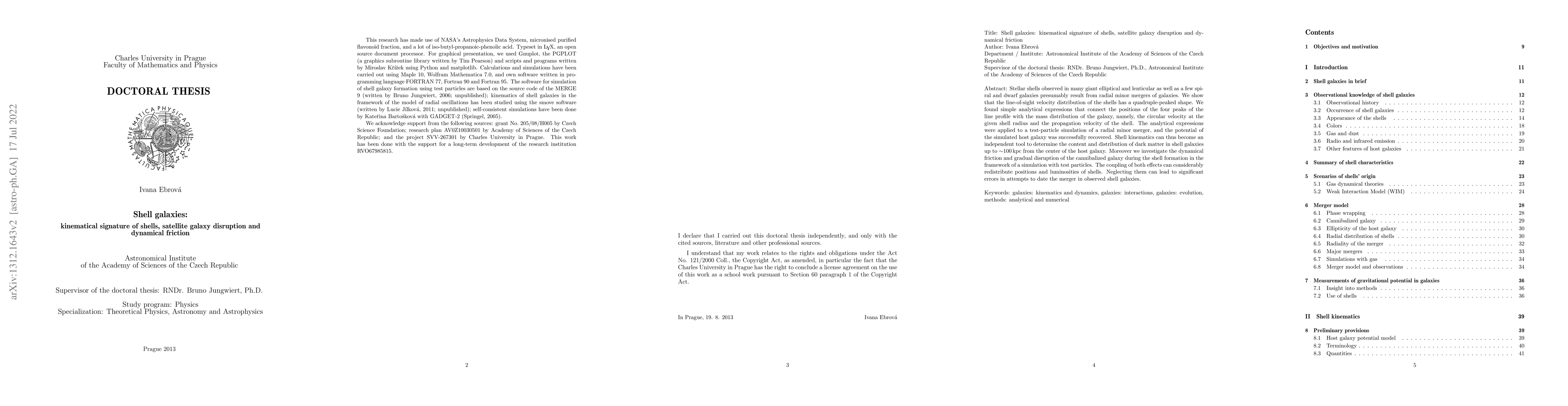 This paper investigates stellar shells in galaxies formed through minor mergers, revealing a quadruple-peaked line-of-sight velocity distribution. Analytical expressions derived from simulations link shell positions to the galaxy's mass distribution, offering a new method to assess dark matter content. It also examines dynamical friction and satellite disruption, highlighting their impact on shell positions and merger dating.