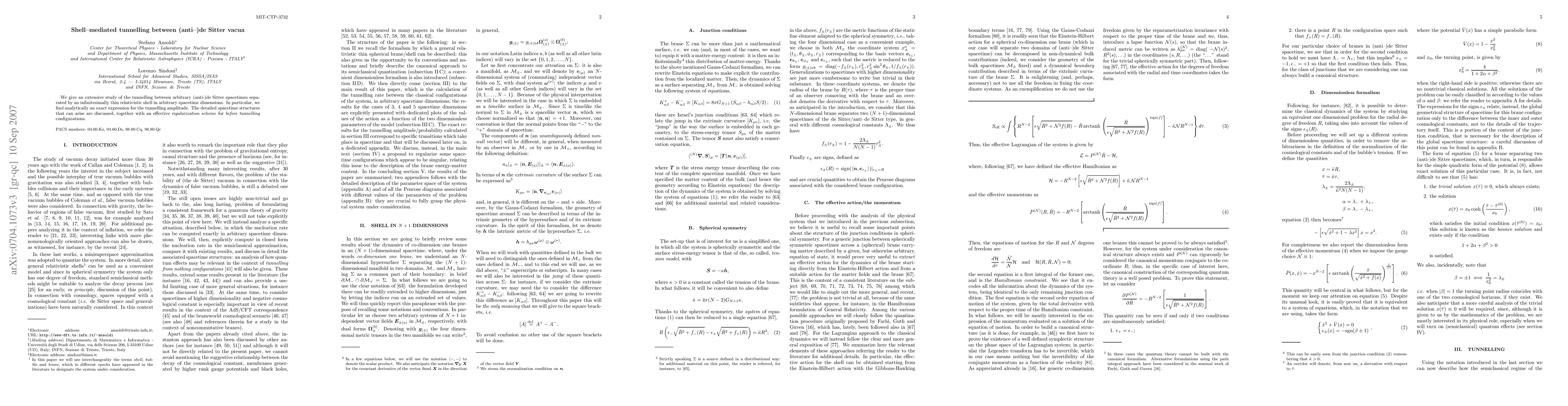 We give an extensive study of the tunnelling between arbitrary (anti-)de Sitter spacetimes separated by an infinitesimally thin relativistic shell in arbitrary spacetime dimensions. In particular, we find analytically an exact expression for the tunnelling amplitude. The detailed spacetime structures that can arise are discussed, together with an effective "regularization scheme" for "before tunnelling" configurations.