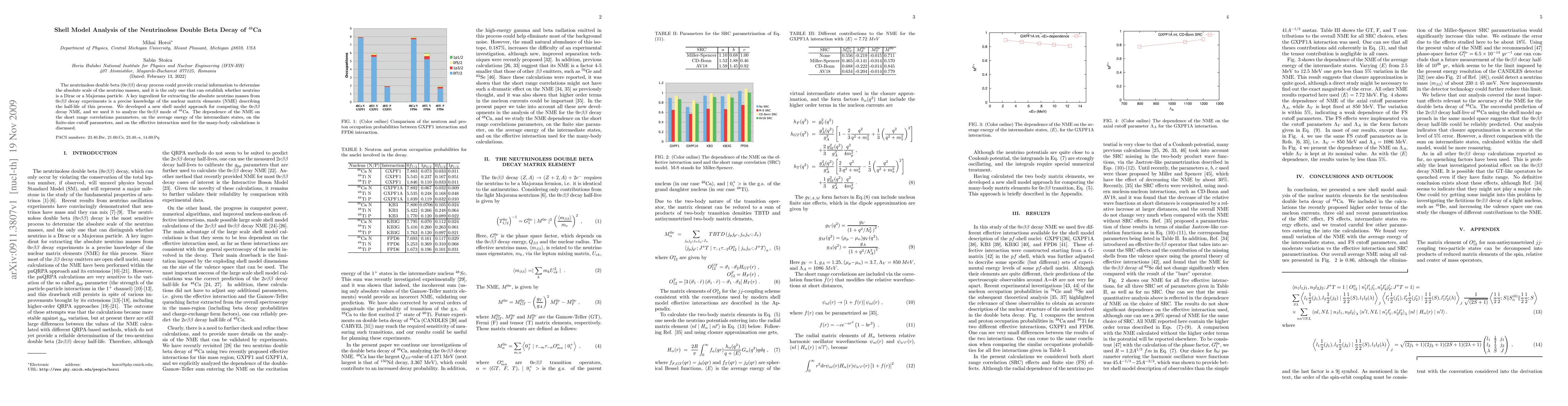 This paper develops a new shell model approach to compute the nuclear matrix elements for the neutrinoless double beta decay of $^{48}$Ca, analyzing the decay's dependence on various parameters including short-range correlations and effective interactions. The study aims to provide precise data for determining neutrino masses and distinguishing between Dirac and Majorana neutrinos.