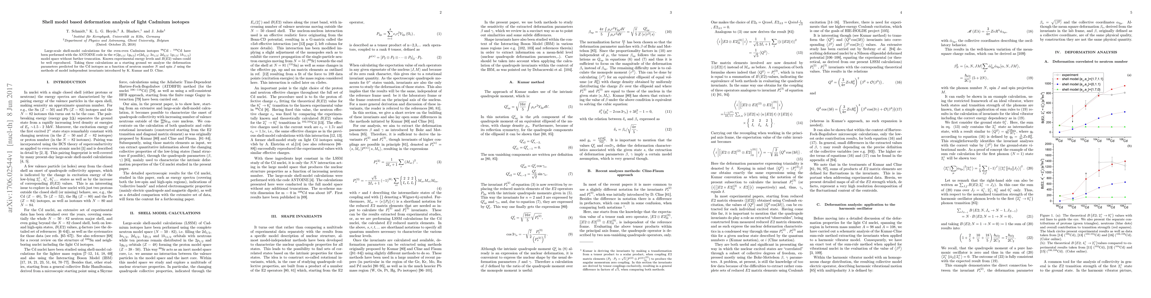 Large-scale shell-model calculations for the even-even Cadmium isotopes 98 Cd - 108 Cd have been performed with the ANTOINE code in the {\pi}(2p 1/2 ; 1g 9/2 ) {\nu}(2d 5/2 ; 3s 1/2 ; 2d 3/2 ; 1g 7/2 ; 1h 11/2 ) model space without further truncation. Known experimental energy levels and B(E2) values could be well reproduced. Taking these calculations as a starting ground we analyze the deformation parameters predicted for the Cd isotopes as a function of neutron number N and spin J using the methods of model independent invariants introduced by K. Kumar and D. Cline.