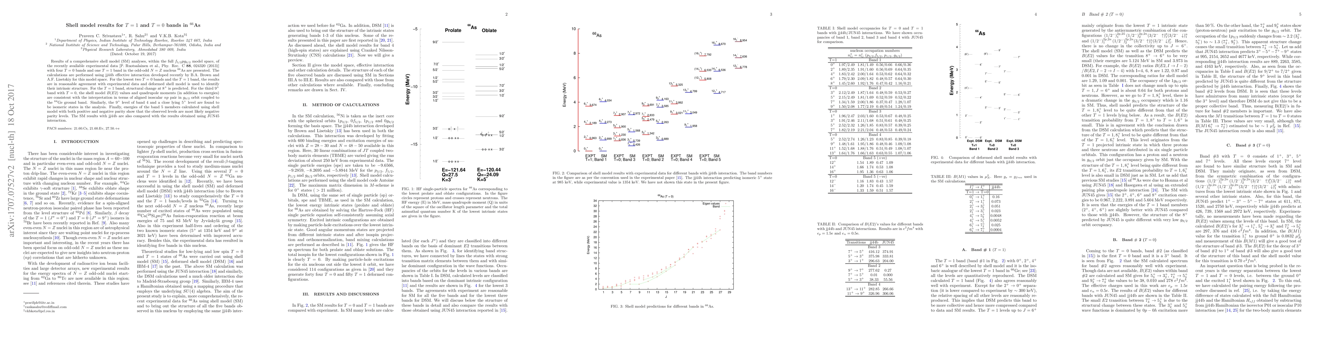 Results of a comprehensive shell model (SM) analyses, within the full $f_{5/2}pg_{9/2}$ model space, of the recently available experimental data [P. Ruotsalainen et al., Phy. Rec. C {88}, 024320 (2013)] with four $T=0$ bands and one $T=1$ band in the odd-odd $N=Z$ nucleus $^{66}$As are presented. The calculations are performed using jj44b effective interaction developed recently by B.A. Brown and A.F. Lisetskiy for this model space. For the lowest two $T=0$ bands and the $T=1$ band, the results are in reasonable agreement with experimental data and deformed shell model is used to identify their intrinsic structure. For the $T=1$ band, structural change at $8^+$ is predicted. For the third $9^+$ band with $T=0$, the shell model $B(E2)$ values and quadrupole moments (in addition to energies) are consistent with the interpretation in terms of aligned isoscalar $np$ pair in $g_{9/2}$ orbit coupled to the $^{64}$Ge ground band. Similarly, the $9^+$ level of band 4 and a close lying $5^+$ level are found to be isomeric states in the analysis. Finally, energies of the band 5 members calculated using shell model with both positive and negative parity show that the observed levels are most likely negative parity levels. The SM results with jj44b are also compared with the results obtained using JUN45 interaction.