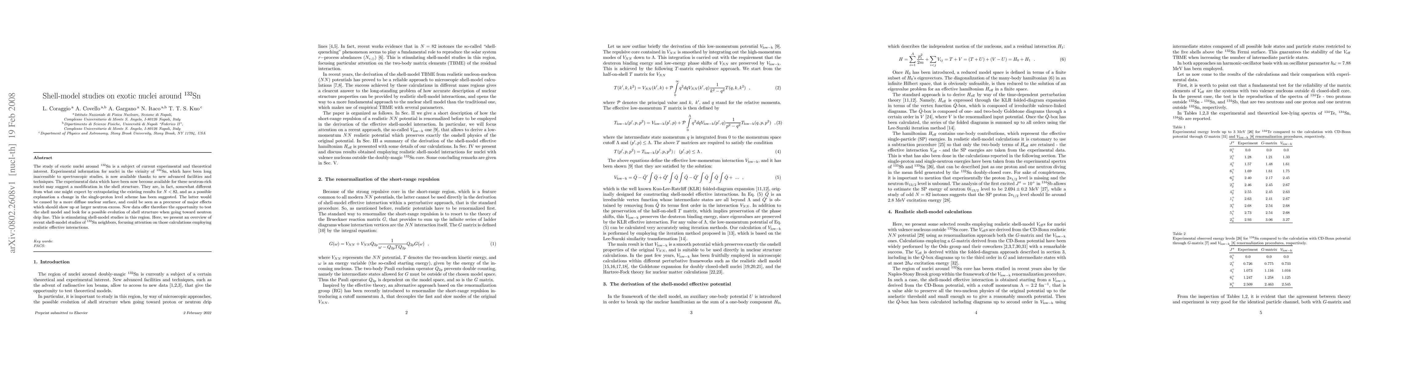 The study of exotic nuclei around 132Sn is a subject of current experimental and theoretical interest. Experimental information for nuclei in the vicinity of 132Sn, which have been long inaccessible to spectroscopic studies, is now available thanks to new advanced facilities and techniques. The experimental data which have been now become available for these neutron-rich nuclei may suggest a modification in the shell structure. They are, in fact, somewhat different from what one might expect by extrapolating the existing results for N<82, and as a possible explanation a change in the single-proton level scheme has been suggested. The latter would be caused by a more diffuse nuclear surface, and could be seen as a precursor of major effects which should show up at larger neutron excess. New data offer therefore the opportunity to test the shell model and look for a possible evolution of shell structure when going toward neutron drip line. This is stimulating shell-model studies in this region. Here, we present an overview of recent shell-model studies of 132Sn neighbors, focusing attention on those calculations employing realistic effective interactions.