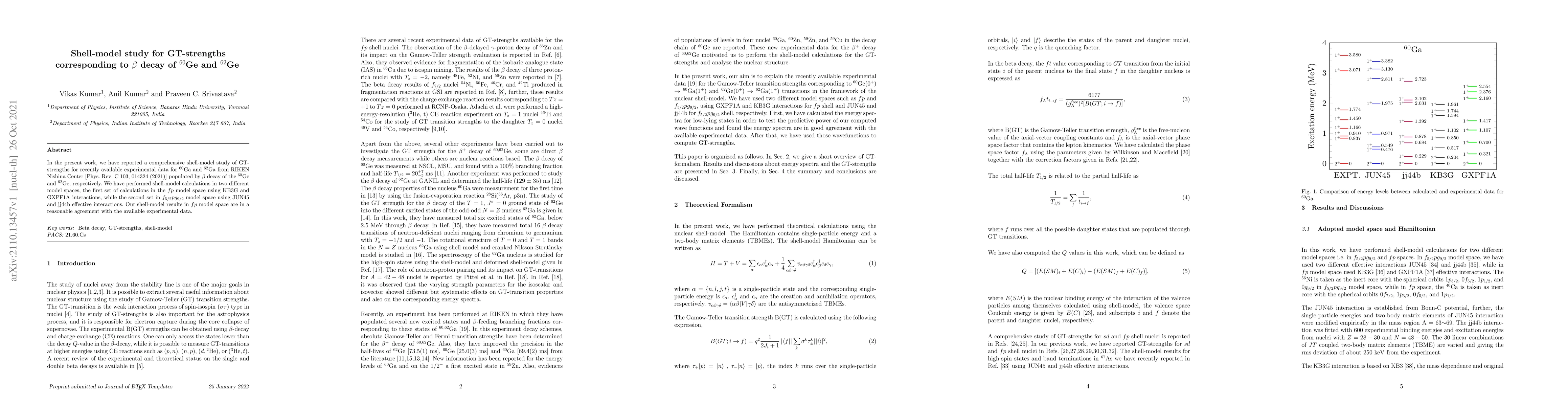Researchers conducted a shell-model study to analyze the gamma transition (GT) strengths of Ga isotopes resulting from the decay of Ge isotopes. Their results show reasonable agreement with experimental data using two different model spaces.