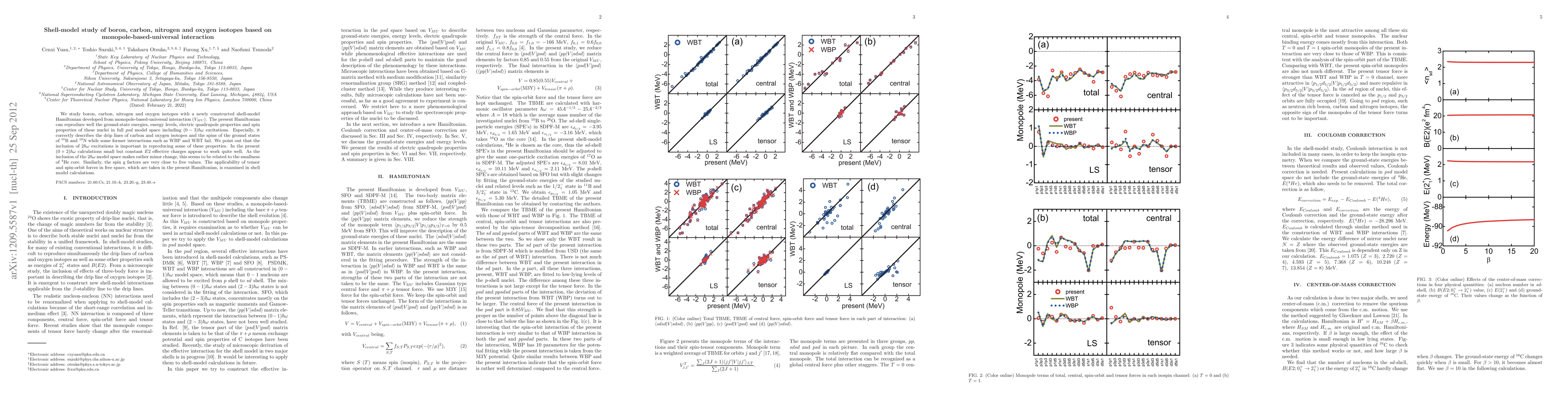 We study boron, carbon, nitrogen and oxygen isotopes with a newly constructed shell-model Hamiltonian developed from monopole-based-universal interaction ($V_{MU}$). The present Hamiltonian can reproduce well the ground-state energies, energy levels, electric quadrupole properties and spin properties of these nuclei in full psd model space including $(0-3)\hbar\omega$ excitations. Especially, it correctly describes the drip lines of carbon and oxygen isotopes and the spins of the ground states of $^{10}$B and $^{18}$N while some former interactions such as WBP and WBT fail. We point out that the inclusion of $2\hbar\omega$ excitations is important in reproducing some of these properties. In the present $(0+2)\hbar\omega$ calculations small but constant E2 effective charges appear to work quite well. As the inclusion of the $2\hbar\omega$ model space makes rather minor change, this seems to be related to the smallness of $^{4}$He core. Similarly, the spin g factors are very close to free values. The applicability of tensor and spin-orbit forces in free space, which are taken in the present Hamiltonian, is examined in shell model calculations.