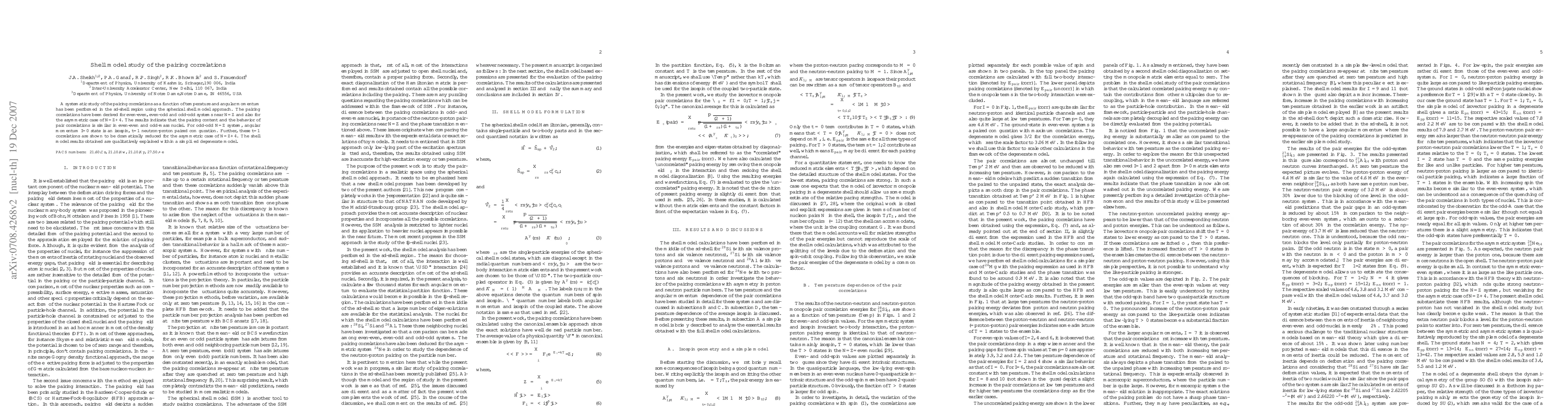 A systematic study of the pairing correlations as a function of temperature and angular momentum has been performed in the sd-shell region using the spherical shell model approach. The pairing correlations have been derived for even-even, even-odd and odd-odd systems near N=Z and also for the asymmetric case of N=Z+4. The results indicate that the pairing content and the behavior of pair correlations is similar in even-even and odd-mass nuclei. For odd-odd N=Z system, angular momentum I=0 state is an isospin, t=1 neutron-proton paired configuration. Further, these t=1 correlations are shown to be dramatically reduced for the asymmetric case of N=Z+4. The shell model results obtained are qualitatively explained within a simplified degenerate model.