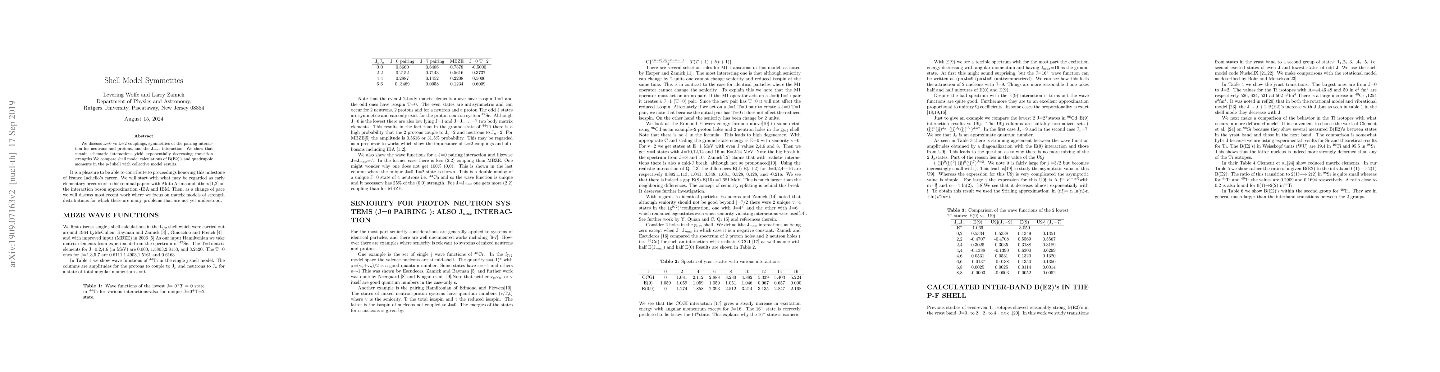 We discuss L=0 vs L=2 couplings, symmetries of the pairing interaction for neutrons and protons, and the J_{max} interaction. We show that certain schematic interactions yield exponentially decreasing transition strengths.We compare shell model calculations of B(E2)'s and quadrupole moments in the p-f shell with collective model results.
