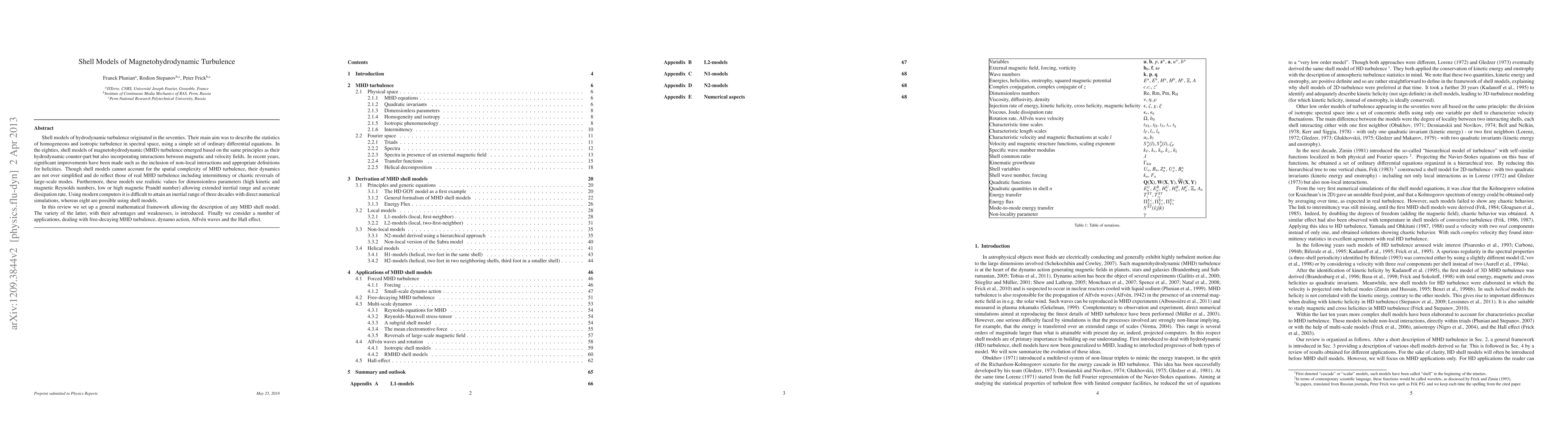 This paper reviews shell models of magnetohydrodynamic (MHD) turbulence, which use ordinary differential equations to describe the statistical behavior of MHD turbulence in spectral space. These models incorporate interactions between magnetic and velocity fields and have been refined to reflect real MHD turbulence dynamics, including intermittency and chaotic reversals.