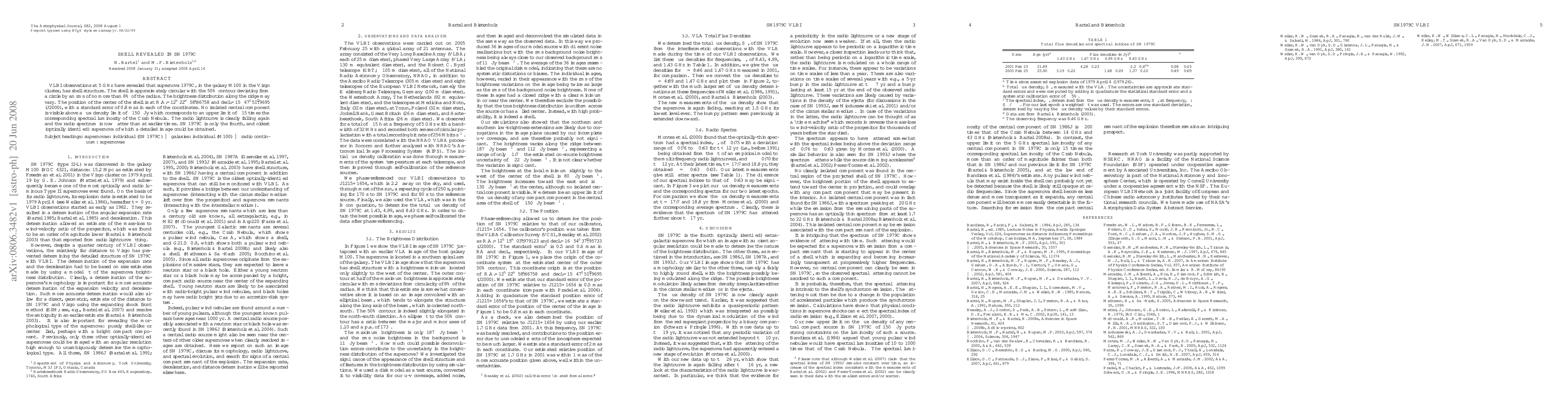 VLBI observations at 5 GHz have revealed that supernova 1979C, in the galaxy M100 in the Virgo cluster, has shell structure. The shell is approximately circular with the 50% contour deviating from a circle by an rms of no more than 8% of the radius. The brightness distribution along the ridge may vary. The position of the center of the shell is at R.A.=12h 22m 58.66758s and decl.=15^o 47' 51.9695" (J2000), with a standard error of 0.8 mas in each of the coordinates. No isolated central component is visible above a flux density limit of ~0.15 mJy which corresponds to an upper limit of ~15 times the corresponding spectral luminosity of the Crab Nebula. The radio lightcurve is clearly falling again and the radio spectrum is now flatter than at earlier times. SN 1979C is only the fourth, and oldest (optically identified) supernova of which a detailed image could be obtained.