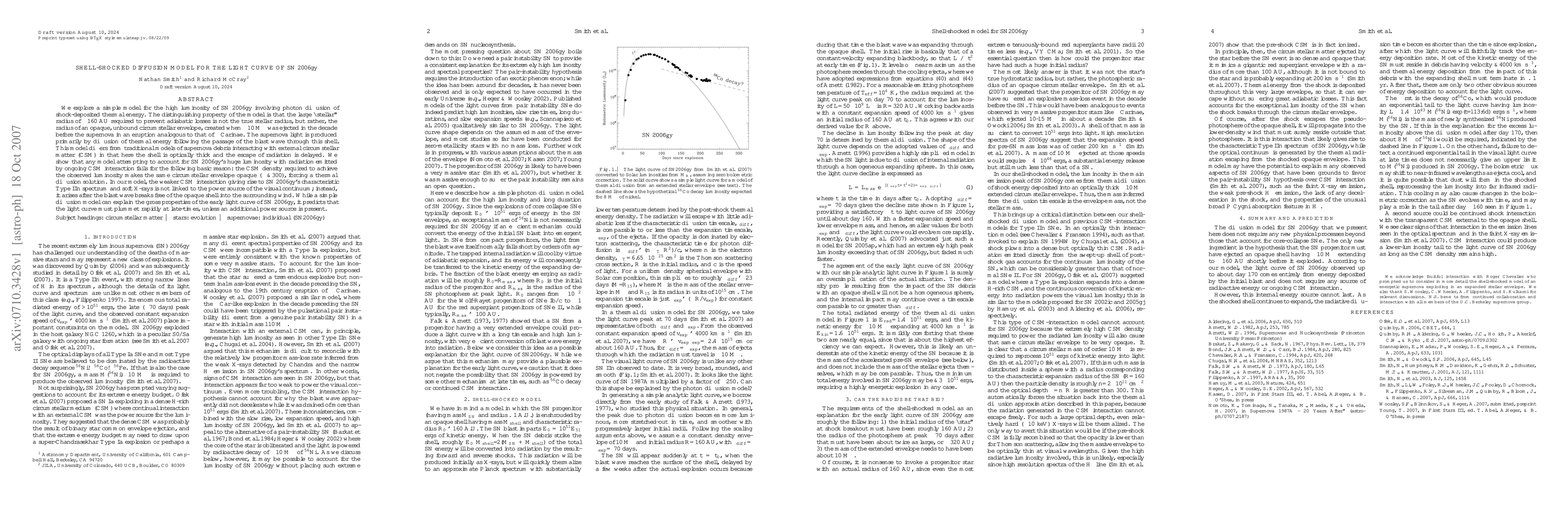 We explore a simple model for the high luminosity of SN 2006gy involving photon diffusion of shock-deposited thermal energy. The distinguishing property of the model is that the large ``stellar'' radius of 160 AU required to prevent adiabatic losses is not the true stellar radius, but rather, the radius of an opaque, unbound circumstellar envelope, created when 10 Msun was ejected in the decade before the supernova in an eruption analogous to that of eta Carinae. The supernova light is produced primarily by diffusion of thermal energy following the passage of the blast wave through this shell. This model differs from traditional models of supernova debris interacting with external CSM in that here the shell is optically thick and the escape of radiation is delayed. We show that any model attempting to account for SN2006gy's huge luminosity with radiation emitted by ongoing CSM interaction fails for the following basic reason: the CSM density required to achieve the observed luminosity makes the same circumstellar envelope opaque, forcing a thermal diffusion solution. In our model, the weaker CSM interaction giving rise to SN2006gy's characteristic Type IIn spectrum and soft X-rays is not linked to the power source of the visual continuum; instead, it arises after the blast wave breaks free of the opaque shell into the surrounding wind. While a simple diffusion model can explain the gross properties of the early light curve of SN2006gy, it predicts that the light curve must plummet rapidly at late-times, unless an additional power source is present.