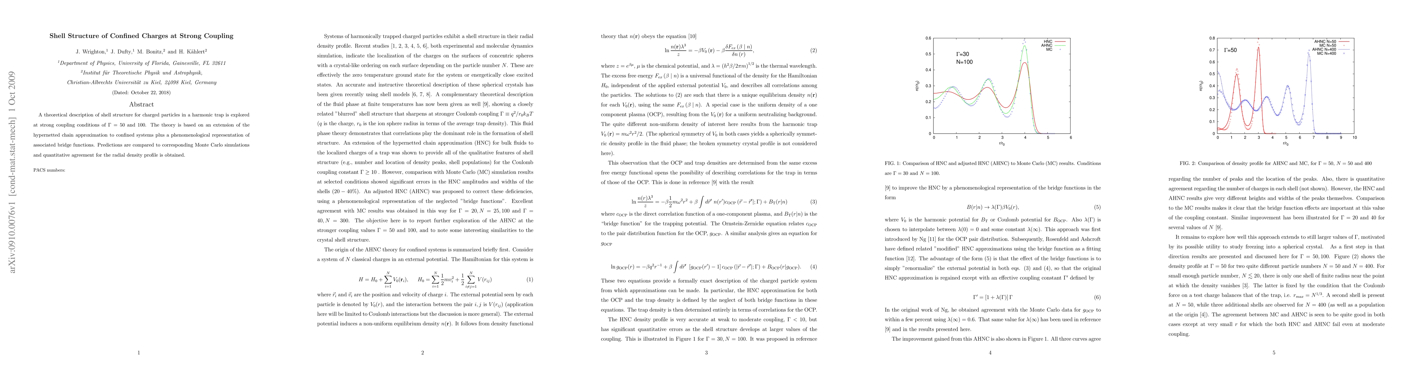 A theoretical description of shell structure for charged particles in a harmonic trap is explored at strong coupling conditions of $\Gamma$ = 50 and 100. The theory is based on an extension of the hypernetted chain approximation to confined systems plus a phenomenological representation of associated bridge functions. Predictions are compared to corresponding Monte Carlo simulations and quantitative agreement for the radial density profile is obtained.