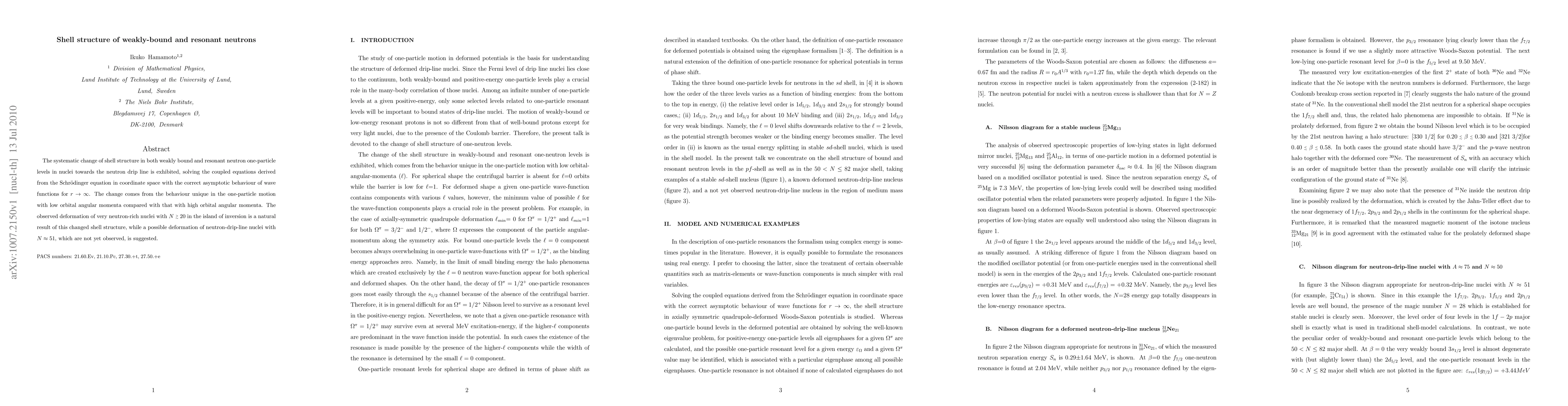 The systematic change of shell structure in both weakly bound and resonant neutron one-particle levels in nuclei towards the neutron drip line is exhibited, solving the coupled equations derived from the Schr\"{o}dinger equation in coordinate space with the correct asymptotic behaviour of wave functions for $r \rightarrow \infty$. The change comes from the behaviour unique in the one-particle motion with low orbital angular momenta compared with that with high orbital angular momenta. The observed deformation of very neutron-rich nuclei with $N \simgeq 20$ in the island of inversion is a natural result of this changed shell structure, while a possible deformation of neutron-drip-line nuclei with $N \approx 51$, which are not yet observed, is suggested.
