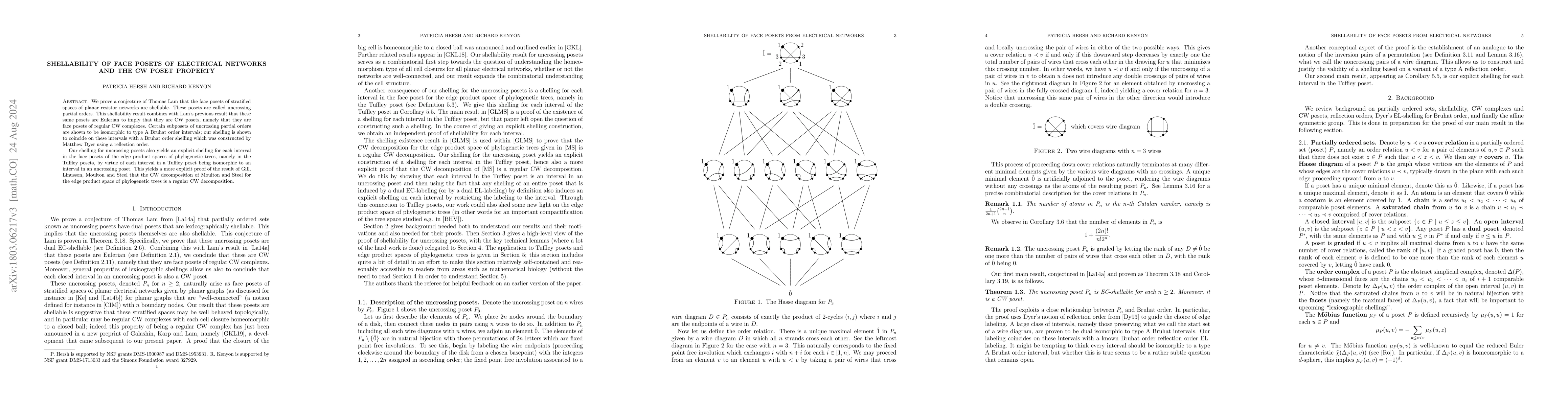 We prove a conjecture of Thomas Lam that the face posets of stratified spaces of planar resistor networks are shellable. These posets are called uncrossing partial orders. This shellability result combines with Lam's previous result that these same posets are Eulerian to imply that they are CW posets, namely that they are face posets of regular CW complexes. Certain subsets of uncrossing partial orders are shown to be isomorphic to type A Bruhat order intervals; our shelling is shown to coincide on these intervals with a Bruhat order shelling which was constructed by Matthew Dyer using a reflection order. Our shelling for uncrossing posets also yields an explicit shelling for each interval in the face posets of the edge product spaces of phylogenetic trees, namely in the Tuffley posets, by virtue of each interval in a Tuffley poset being isomorphic to an interval in an uncrossing poset. This yields a more explicit proof of the result of Gill, Linusson, Moulton and Steel that the CW decomposition of Moulton and Steel for the edge product space of phylogenetic trees is a regular CW decomposition.