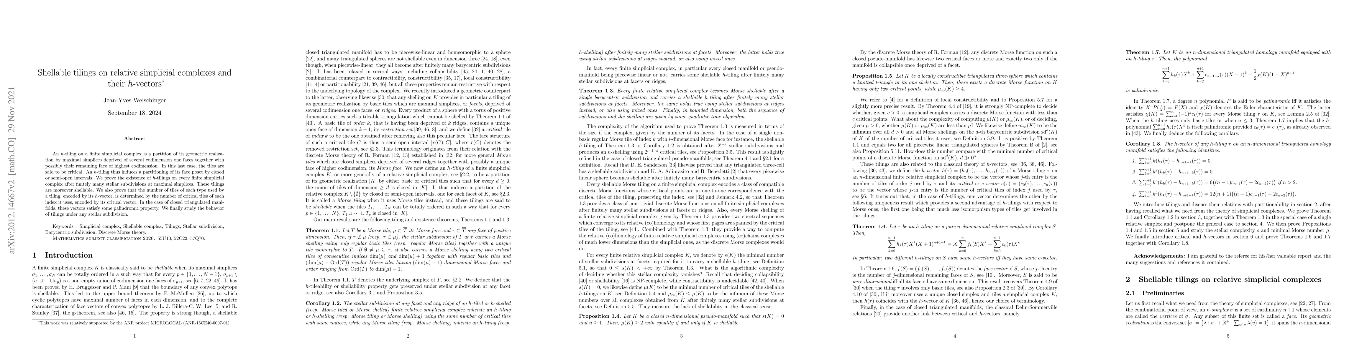 Researchers prove that every finite simplicial complex can be divided into shellable tilings after a limited number of stellar subdivisions, and these tilings have properties related to critical vectors.