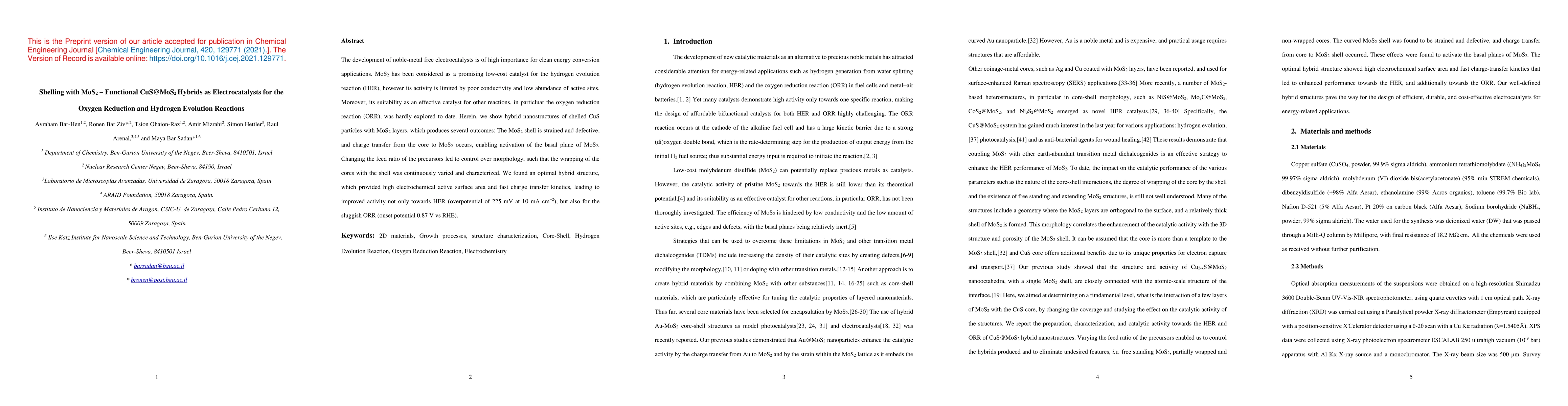 Researchers developed a new electrocatalyst using MoS2 functional CuS@MoS2 hybrids, improving activity in both hydrogen evolution reaction (HER) and oxygen reduction reaction (ORR), with optimal structures showing high surface area and fast charge transfer.