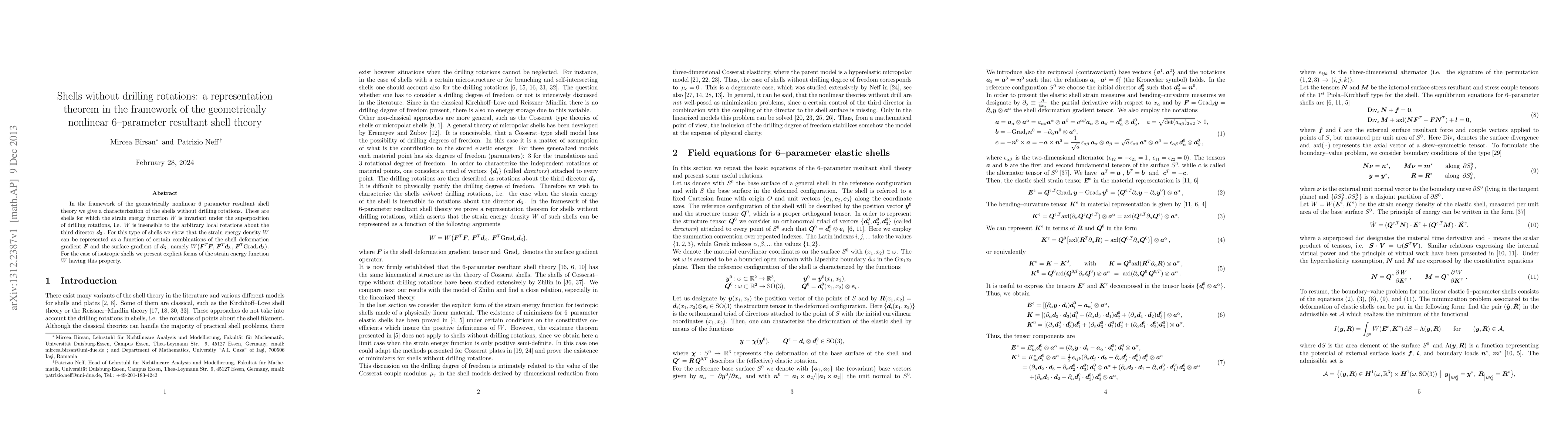 This paper characterizes shells without drilling rotations within the geometrically nonlinear 6-parameter resultant shell theory, showing that their strain energy function is invariant under local rotations about the third director. It presents a representation of the strain energy density as a function of the shell deformation gradient and the surface gradient of the third director.