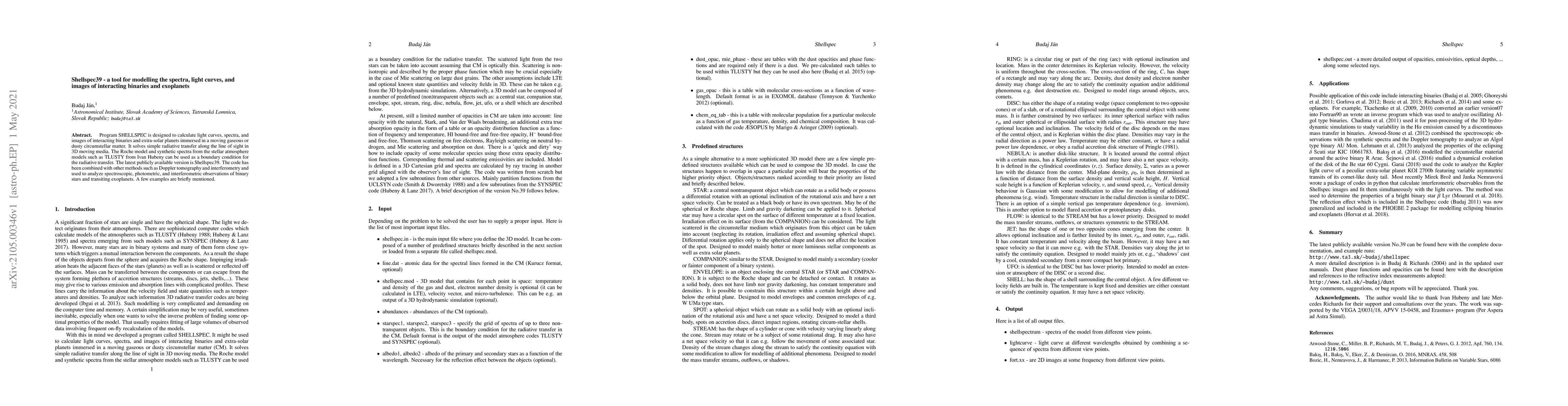 Program SHELLSPEC is designed to calculate light curves, spectra, and images of interacting binaries and extra-solar planets immersed in a moving gaseous or dusty circumstellar matter. It solves simple radiative transfer along the line of sight in 3D moving media. The Roche model and synthetic spectra from the stellar atmosphere models such as TLUSTY from Ivan Hubeny can be used as a boundary condition for the radiative transfer. The latest publicly available version is Shellspec39. The code has been combined with other methods such as Doppler tomography and interferometry and used to analyze spectroscopic, photometric, and interferometric observations of binary stars and transiting exoplanets. A few examples are briefly mentioned.