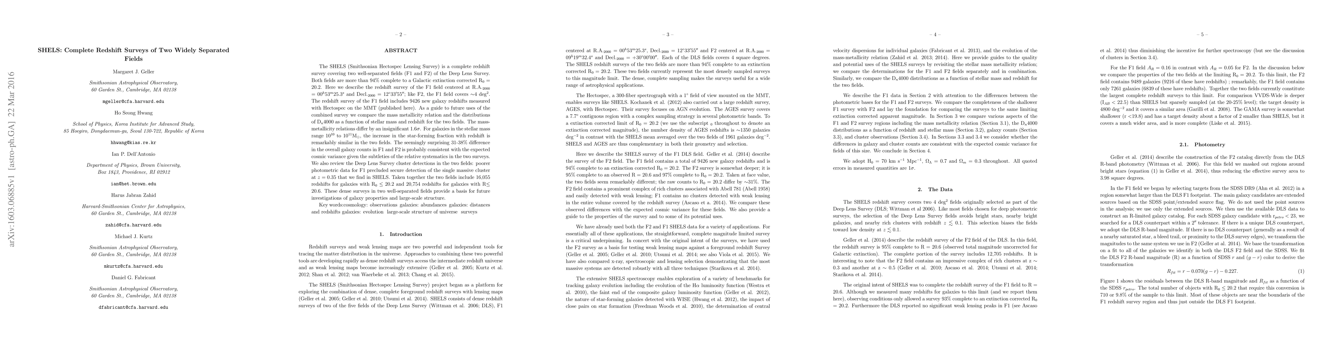 The SHELS survey presents complete redshift data for two fields (F1 and F2) from the Deep Lens Survey, with 9426 new galaxy redshifts in F1. Comparisons show similar mass-metallicity relations and star-forming fractions, despite a notable difference in galaxy counts, likely due to cosmic variance.