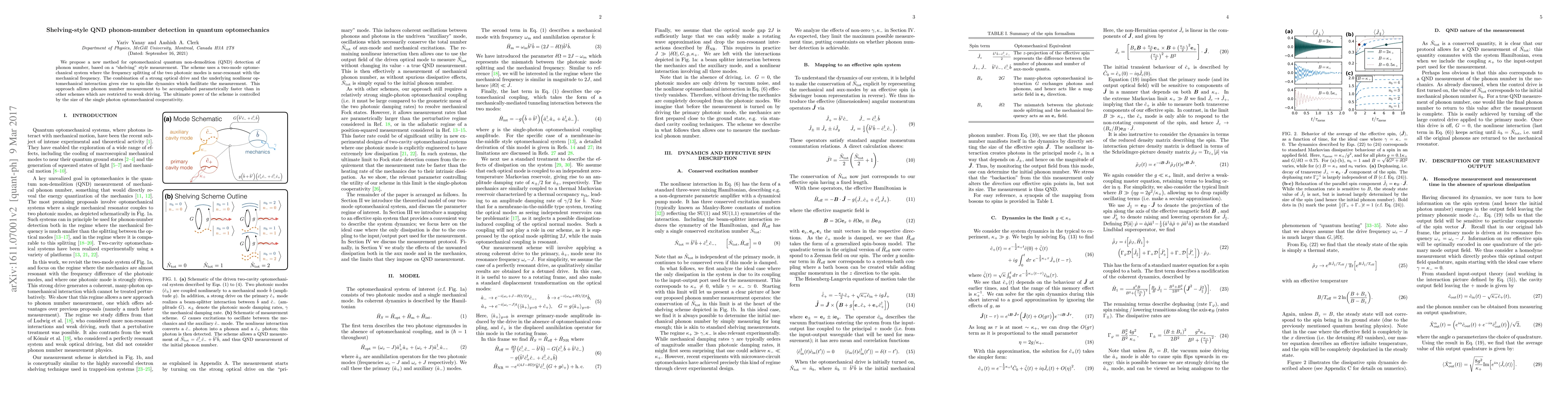 We propose a new method for optomechanical quantum non-demolition (QND) detection of phonon number, based on a "shelving" style measurement. The scheme uses a two-mode optomechanical system where the frequency splitting of the two photonic modes is near-resonant with the mechanical frequency. The combination of a strong optical drive and the underlying nonlinear optomechanical interaction gives rise to spin-like dynamics which facilitate the measurement. This approach allows phonon number measurement to be accomplished parametrically faster than in other schemes which are restricted to weak driving. The ultimate power of the scheme is controlled by the size of the single photon optomechanical cooperativity.