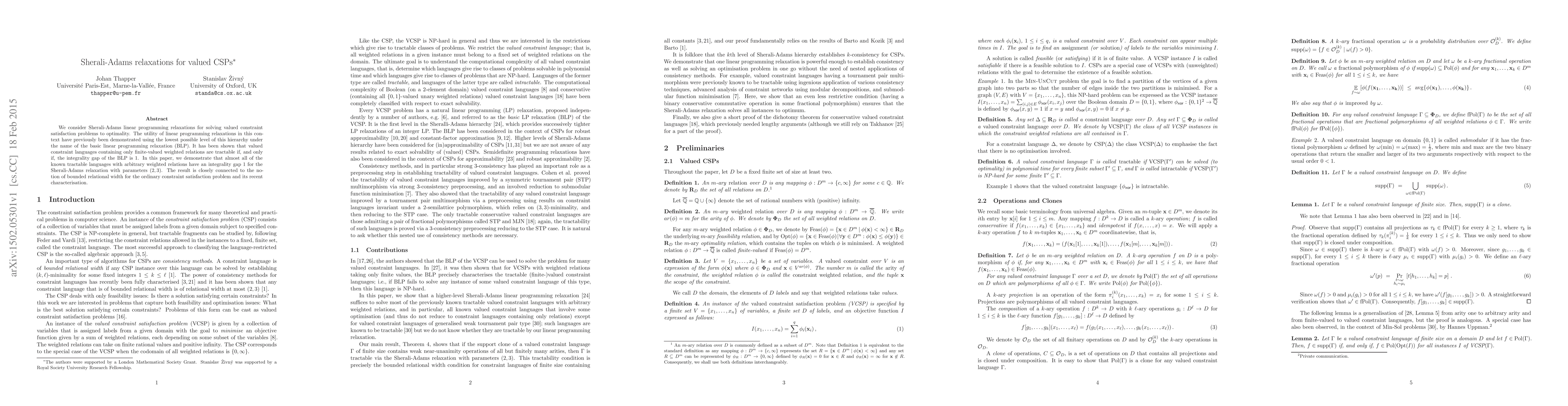 This paper explores the use of Sherali-Adams linear programming relaxations to solve valued constraint satisfaction problems optimally. It shows that almost all known tractable languages with arbitrary weighted relations have an integrality gap of 1 for the Sherali-Adams relaxation with parameters (2,3), linking this result to the notion of bounded relational width in the ordinary constraint satisfaction problem.