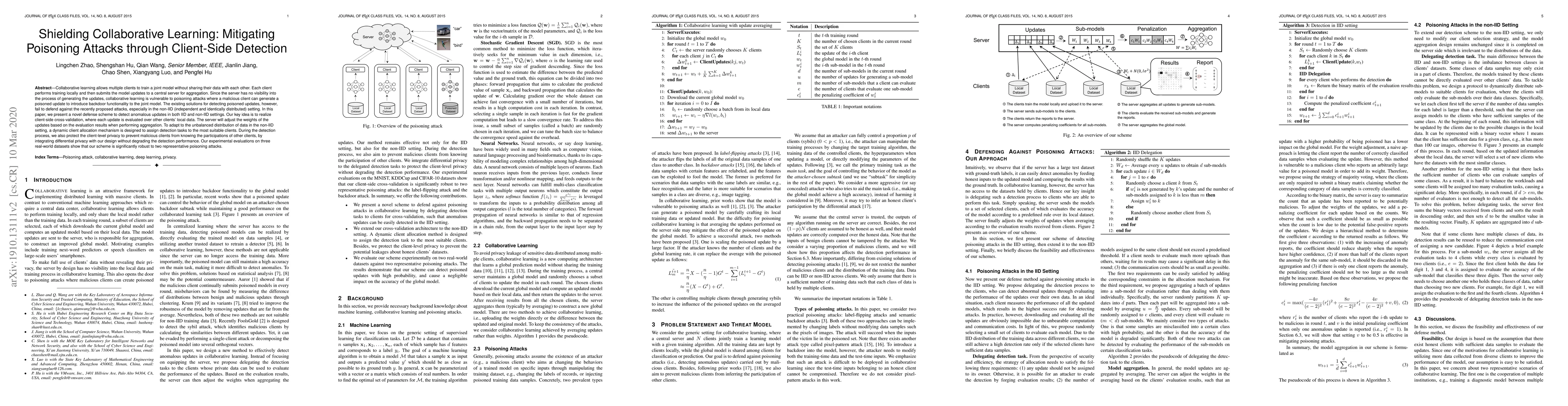 This research paper proposes a novel defense scheme to detect poisoning attacks in collaborative learning, utilizing client-side cross-validation and dynamic client allocation to protect against malicious updates while maintaining client-level privacy.