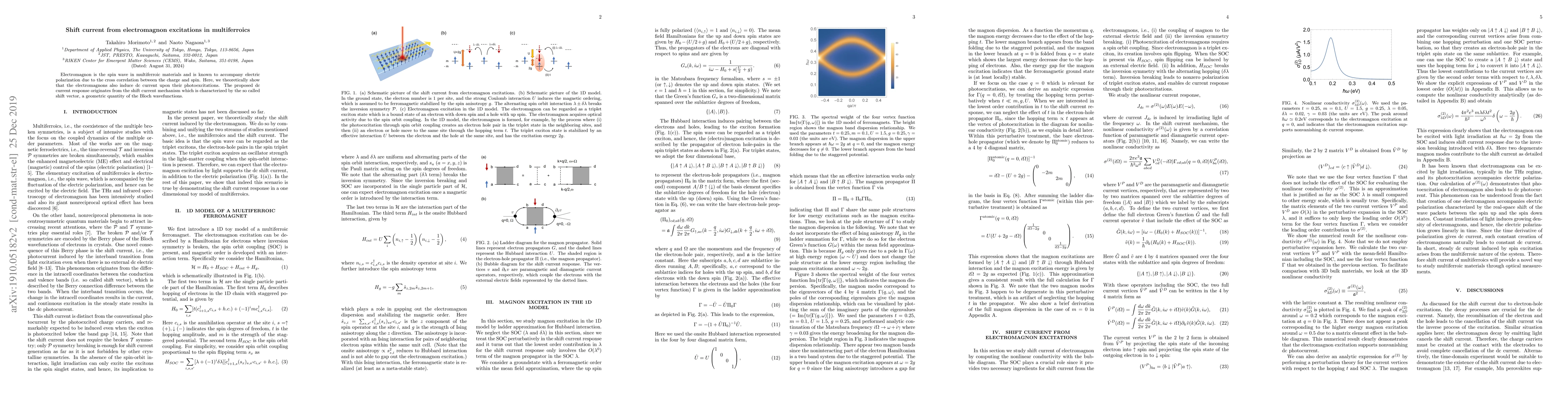 Researchers show that photoexciting electromagnons in multiferroic materials induces a direct current due to a shift vector in the material's crystal structure, providing new insight into the relationship between spin waves and electric polarization.