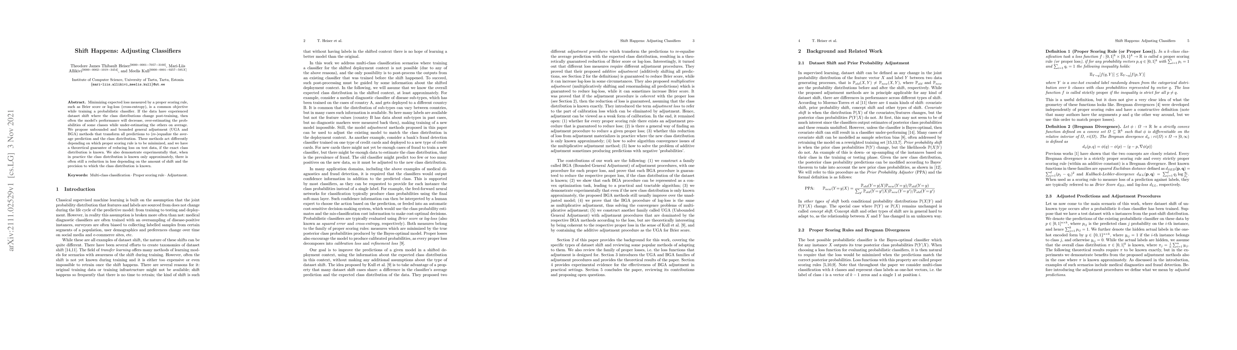 Minimizing expected loss measured by a proper scoring rule, such as Brier score or log-loss (cross-entropy), is a common objective while training a probabilistic classifier. If the data have experienced dataset shift where the class distributions change post-training, then often the model's performance will decrease, over-estimating the probabilities of some classes while under-estimating the others on average. We propose unbounded and bounded general adjustment (UGA and BGA) methods that transform all predictions to (re-)equalize the average prediction and the class distribution. These methods act differently depending on which proper scoring rule is to be minimized, and we have a theoretical guarantee of reducing loss on test data, if the exact class distribution is known. We also demonstrate experimentally that, when in practice the class distribution is known only approximately, there is often still a reduction in loss depending on the amount of shift and the precision to which the class distribution is known.