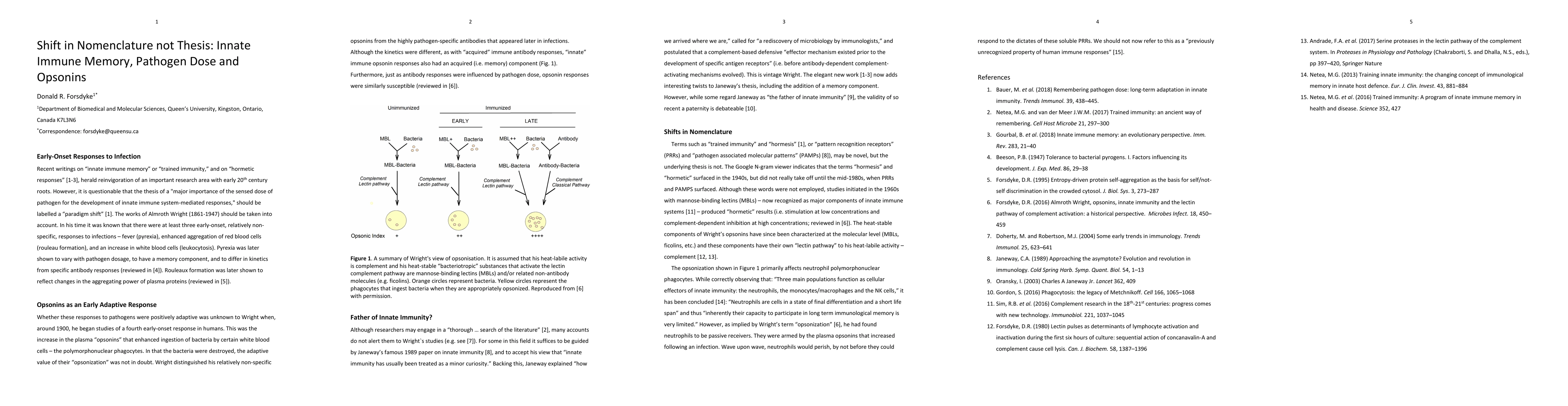 Recent writings on "innate immune memory" or "trained immunity," and on "hormetic responses," herald reinvigoration of an important research area with early 20th century roots. However, it is questionable that the thesis of a "major importance of the sensed dose of pathogen for the development of innate immune system-mediated responses," should be labelled a "paradigm shift." The works of Almroth Wright (1861-1947) should be taken into account.