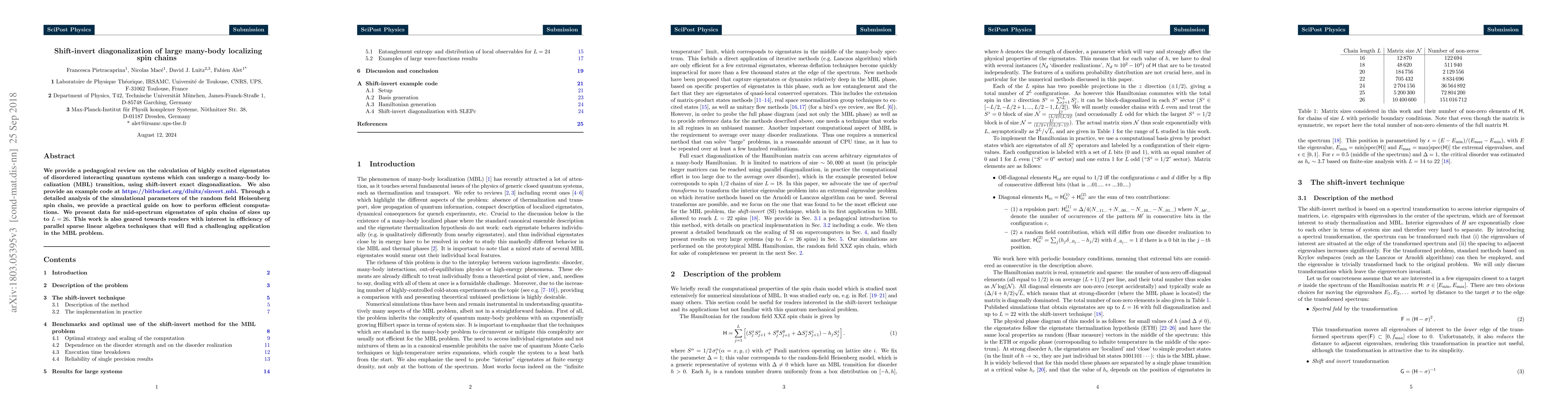 This paper reviews the shift-invert exact diagonalization method for calculating highly excited eigenstates in disordered interacting quantum systems, focusing on many-body localization. It provides a practical guide and example code for efficient computations on random field Heisenberg spin chains, presenting data for mid-spectrum eigenstates up to size $L=26$.