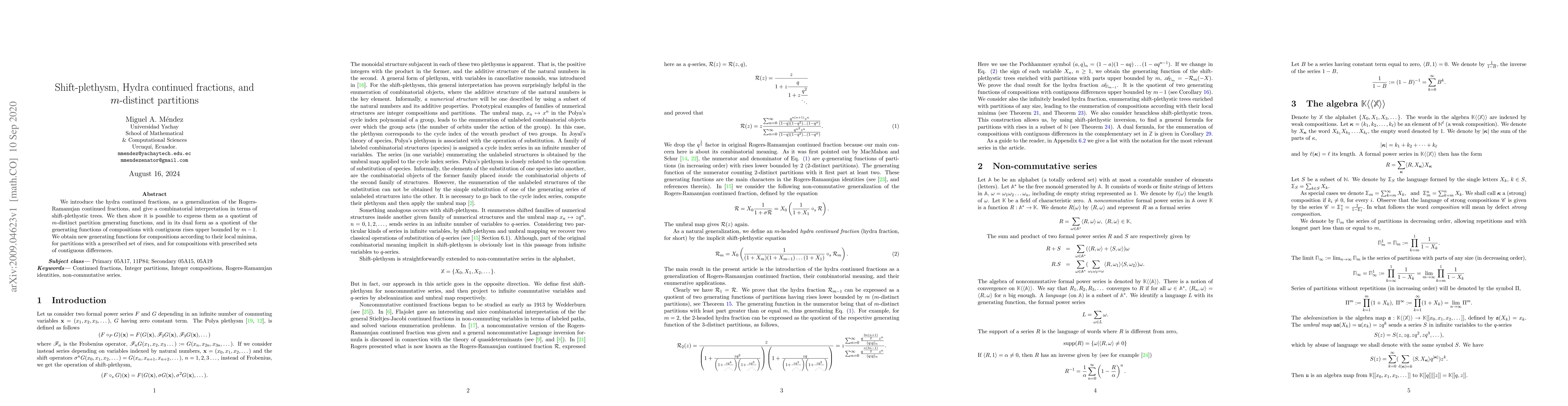 We introduce the hydra continued fractions, as a generalization of the Rogers-Ramanujan continued fractions, and give a combinatorial interpretation in terms of shift-plethystic trees. We then show it is possible to express them as a quotient of m-distinct partition generating functions, and in its dual form as a quotient of the generating functions of compositions with contiguous rises upper bounded by m-1. We obtain new generating functions for compositions according to their local minima, for partitions with a prescribed set of rises, and for compositions with prescribed sets of contiguous differences.