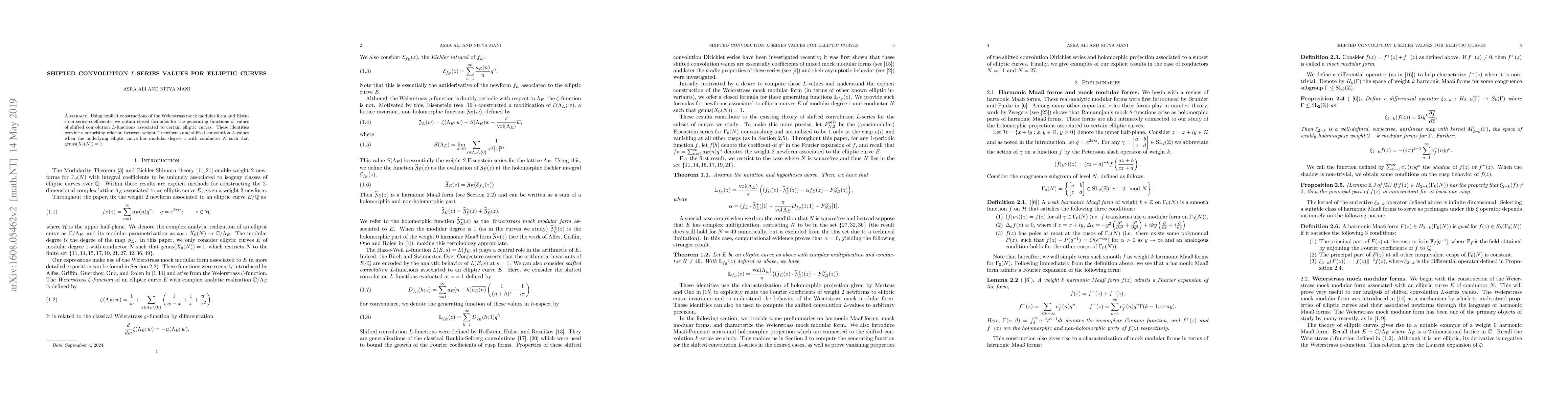 Using explicit constructions of the Weierstrass mock modular form, we offer a closed formula for generating the values of shifted convolution $L$-values for certain elliptic curves that can be computed to arbitrary precision. These identities provide a surprising relation between weight $2$ newforms and shifted convolution $L$-values.