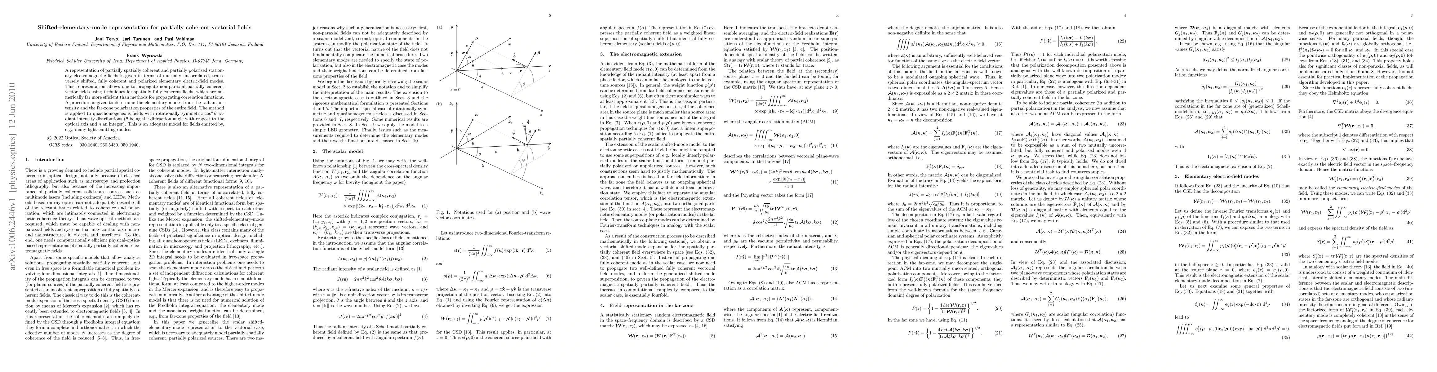 This paper proposes a shifted-elementary-mode representation for partially coherent vectorial fields, enabling efficient propagation using techniques for fully coherent fields. The method determines elementary modes from radiant intensity and polarization properties, applied to quasihomogeneous fields like those from LED emitters.
