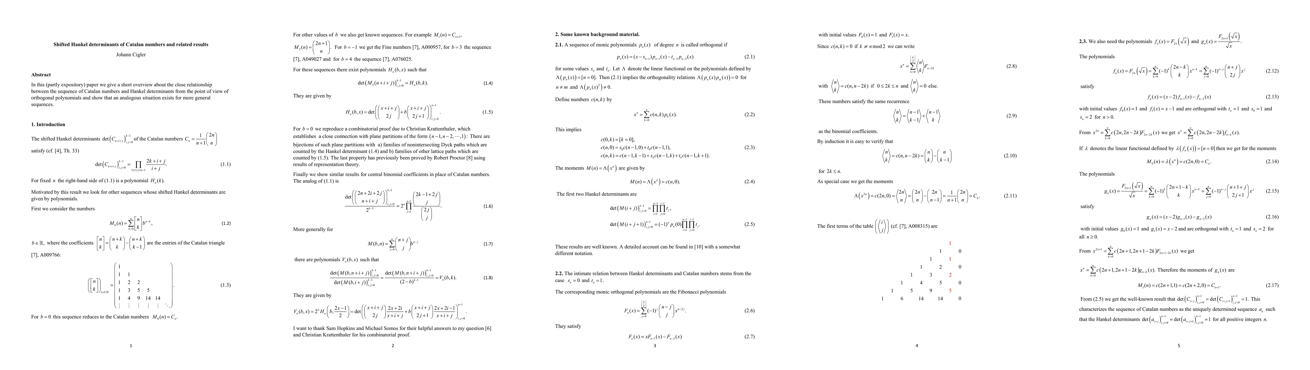 In this (partly expository) paper we give a short overview about the close relationship between the sequence of Catalan numbers and Hankel determinants from the point of view of orthogonal polynomials and show that an analogous situation exists for more general sequences.