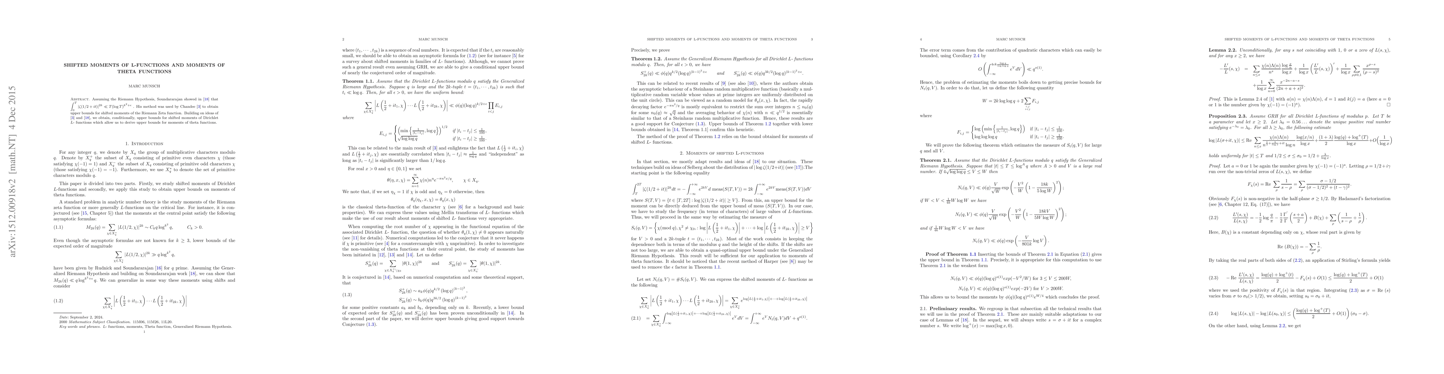 This paper presents conditional upper bounds for shifted moments of Dirichlet L-functions, extending previous results on the Riemann Zeta function, and uses these to derive bounds for moments of theta functions, assuming the Riemann Hypothesis.