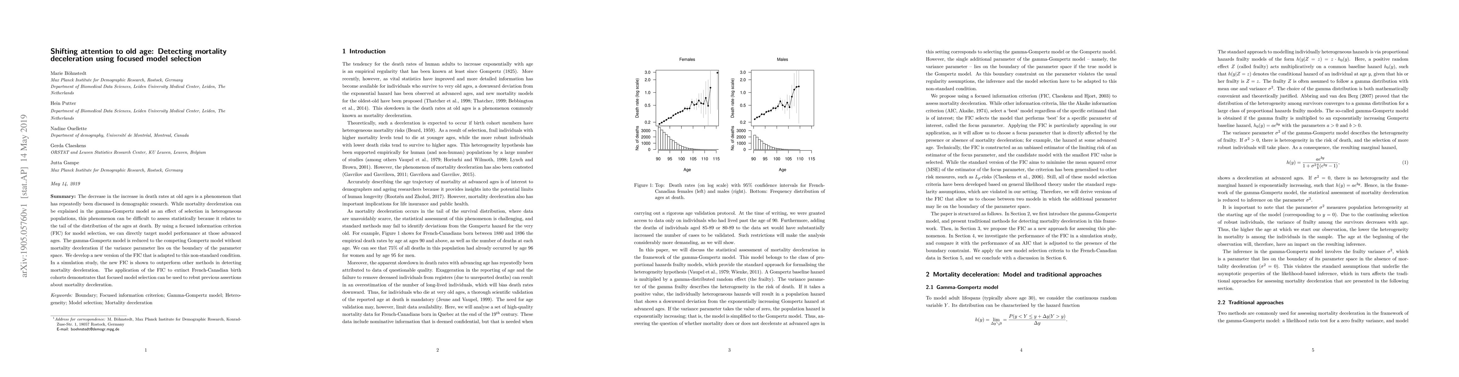 This paper develops a new focused information criterion adapted for detecting mortality deceleration in old age using the gamma-Gompertz model, showing superior performance in simulations and rebutting previous claims about mortality deceleration in French-Canadian birth cohorts.