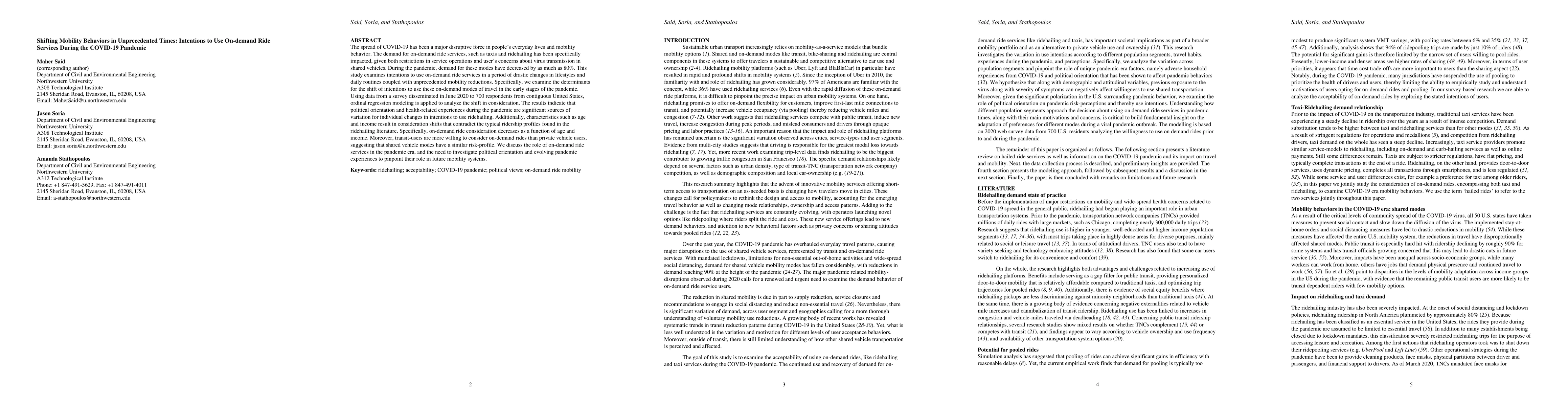 This study investigates shifts in intentions to use on-demand ride services during the COVID-19 pandemic, revealing that political orientation and health-related experiences significantly influence these changes. Contrary to typical profiles, older and higher-income individuals show decreased consideration for ridehailing, while transit users are more open to it.