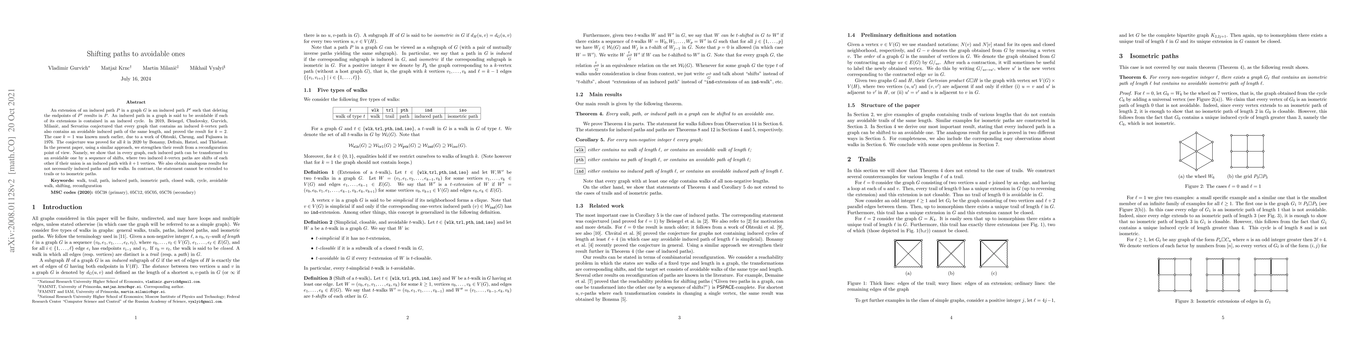 This paper strengthens the 2020 conjecture by showing that any induced path in a graph can be reconfigured into an avoidable induced path through a series of "shifts," where shifts are defined by extending the path to include one more vertex. It also extends these results to non-induced paths and walks, but not to trails or isometric paths.