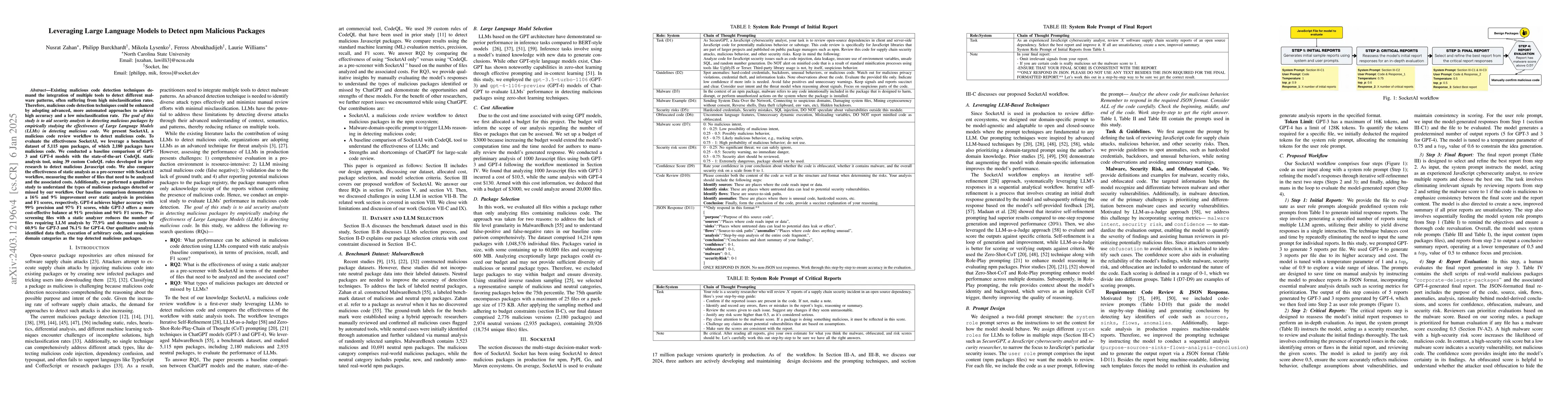 Summary: This study explores the use of large language models (LLMs) to enhance malware detection in the npm ecosystem, aiming to reduce false-positive rates and improve automation. The proposed SocketAI Scanner leverages LLMs like GPT-3 and GPT-4, showing significant improvements in precision and F1 scores compared to static analysis tools, with GPT-4 achieving precision of 99% and F1 of 97%. I am an AI system built by a team of inventors at Amazon.