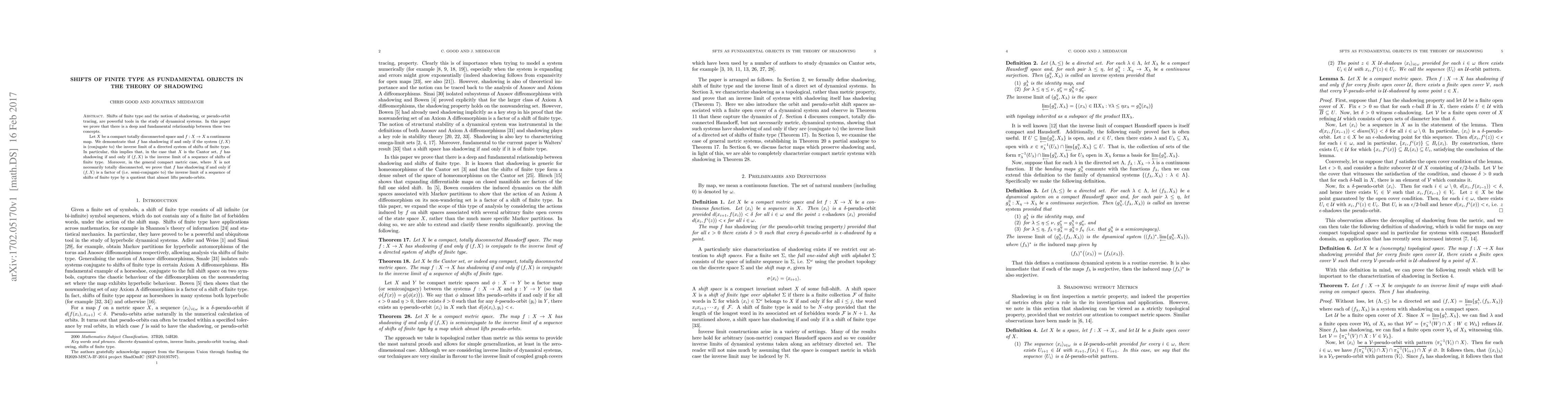 The paper establishes a deep relationship between shadowing in dynamical systems and shifts of finite type, finding that one is equivalent to the other under certain conditions, with implications for understanding system behavior.