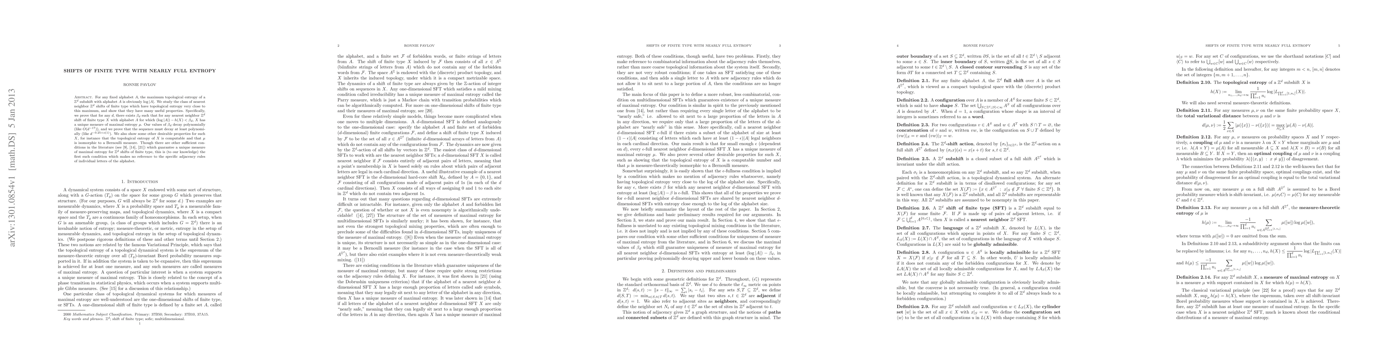 This research paper shows that for a specific class of nearest neighbor Z^d shifts of finite type, having topological entropy close to the maximum is sufficient to guarantee a unique measure of maximal entropy. The study provides new insights into the properties of such shifts.