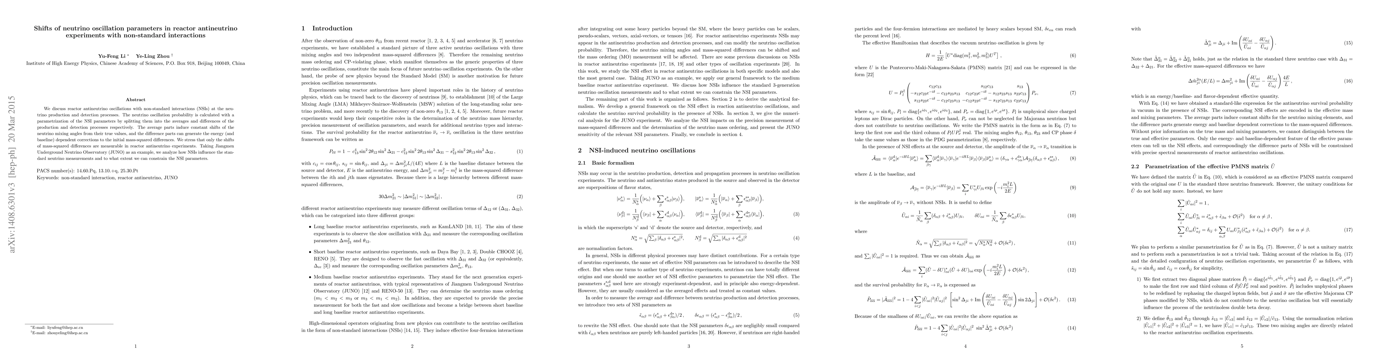 This paper investigates the effects of non-standard interactions (NSIs) on reactor antineutrino oscillations, showing that NSIs induce shifts in neutrino mixing angles and energy-dependent corrections to mass-squared differences. Using the JUNO experiment, it demonstrates how NSIs can influence standard neutrino measurements and constrains the NSI parameters.