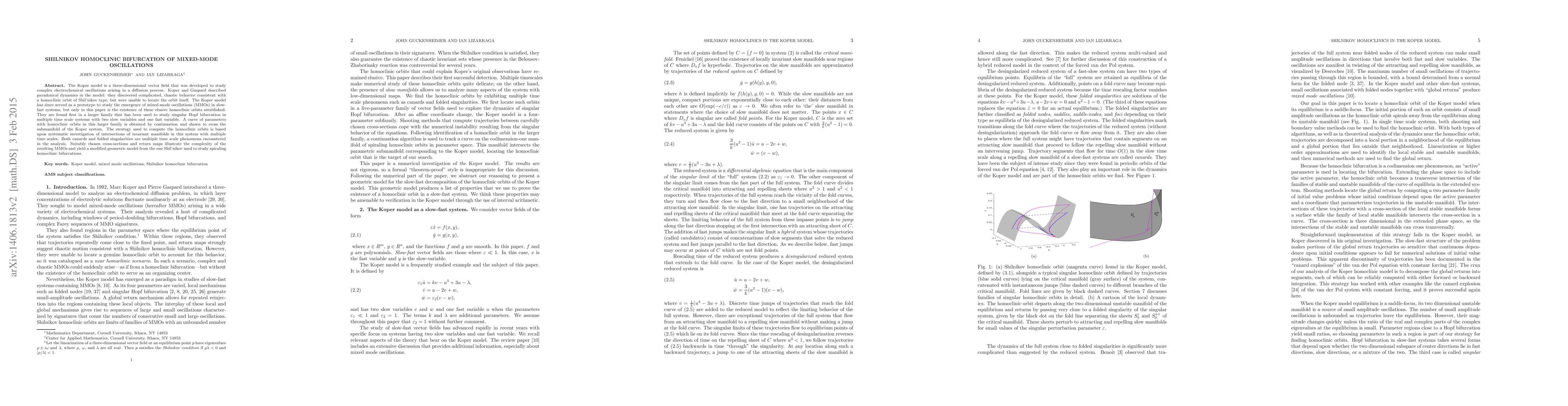 This paper establishes the existence of elusive homoclinic orbits in the Koper model, a three-dimensional vector field used to study complex electrochemical oscillations. The authors employ systematic investigation of intersections of invariant manifolds to compute these orbits, revealing a modified geometric model for mixed-mode oscillations in slow-fast systems.