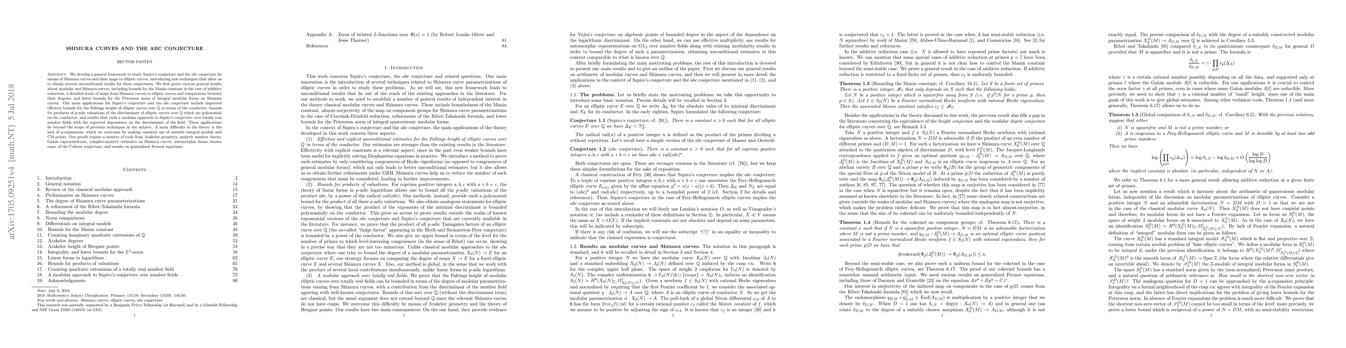 This paper develops a framework to study Szpiro's and the abc conjectures using Shimura curves and their relations to elliptic curves, introducing new techniques that provide effective bounds and comparisons, notably overcoming the challenge of lacking $q$-expansions by employing integral models and CM points.